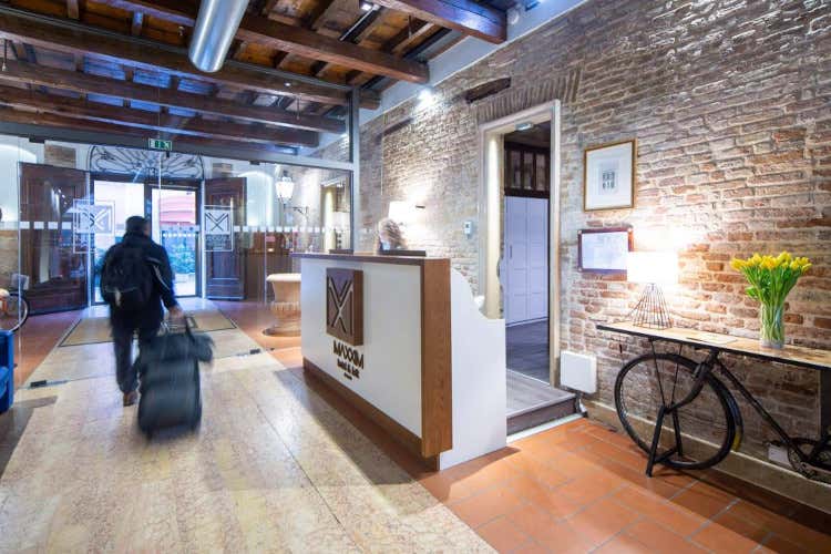 Le matrimoniali sono delle camere che si sviluppano su un unico piano in cui gli spazi sono sapientemente gestiti creando un’atmosfera intima e calda. Le triple si estendono su un unico livello e sono ideali per i genitori che viaggiano con i figli o per gruppi di amici. I loft si sviluppano su due o tre livelli, dalla zona living dove si può leggere o guardare la tv basta poi salire gli scalini per raggiungere la zona notte e dove si troverà un ambiente più isolato che invita al relax e alla tranquillità. I loft con vista si trovano all’ultimo piano dell’edificio e offrono massima privacy e allo stesso tempo una vista sulle caratteristiche corti interne ferraresi. L’alloggio si sviluppa su due livelli ma senza muri divisori permettendo alla luce naturale di penetrare in ogni angolo attraverso l’ampia porta finestra che collega la zona living all’ampia terrazza. Salendo gli scalini si raggiunge la zona notte, un ambiente più isolato, raccolto e tranquillo. Le matrimoniali mansardate si trovano all’ultimo piano del palazzo, luminose e calde, vengono inondate dalla luce naturale diretta attraverso i lucernari presenti sul soffitto mansardato. È l’unica tipologia che offre la vasca da bagno, invitando gli ospiti a concedersi un momento intimo di relax.