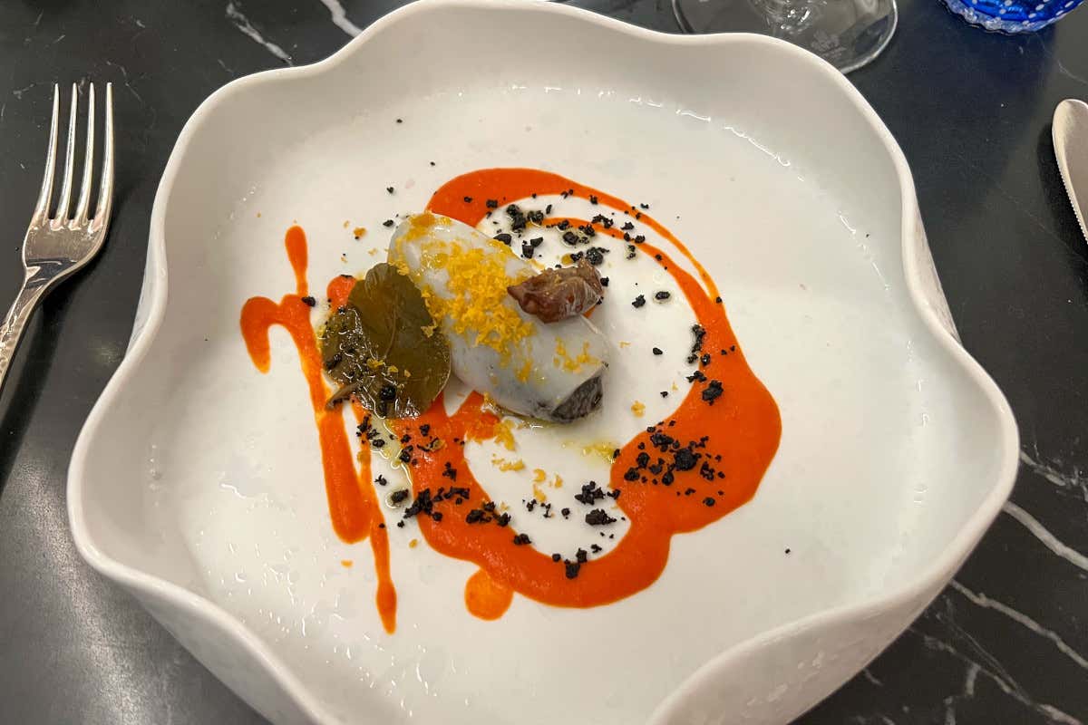 Il menu di La Musa si legge come la mappa di un viaggio. Ogni piatto è una tappa: dalla delicatezza del maki che sposa la ricciola, all'avocado, alla ricotta di pecora e crema di pomodori secchi, ogni ingrediente ci parla di viaggio. I ravioli aperti sono un equilibrio tra la terra e il mare, con i friarielli che si abbracciano allo scampo in una presentazione che sfida la convenzione della pasta ripiena. La cacciatora di calamaro è un incontro tra la ricchezza vegetale e la pesca, dove la melanzana e la bottarga sono elementi di un dialogo culinario in cui nessuno prevale ma tutti contribuiscono al racconto complessivo. E il dolce, "Finire a capra e mele", è l'epilogo di questo viaggio, un piatto che lascia il segno con la sua capacità di unire la freschezza della mela alla cremosità del latte di capra.
