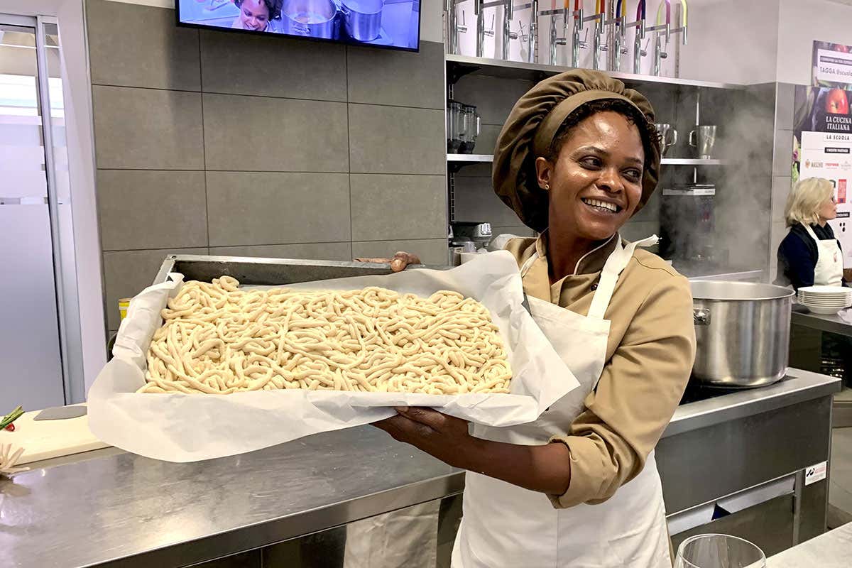 Un viaggio nell'ospitalità toscana più autentica si è svolto negli spazi della Scuola de La Cucina Italiana a Milano, dove Claudia Giuliani e Luca Bernetti hanno presentato il loro concetto di accoglienza. «Nel 2015 in Val d'Orcia, al centro della vallata abbiamo acquistato una vecchia fattoria e l'abbiamo valorizzata, non rimodernata - hanno spiegato - Ne abbiamo mantenuto l'identità dando vita a Locanda in Tuscany. Tanto per intenderci, i pavimenti irregolari e le strutture di base della stalla sono rimasti tali e dal 2016 accolgono il ristorante Taverna di Mozart». Qui la cucina è stata affidata a Tina Aigbovo Pinzi. Nata 43 anni fa in Nigeria, si è trasferita in Italia scegliendo un piccolo paesino nella provincia di Siena, San Casciano dei Bagni, per stabilirsi e creare la sua famiglia.