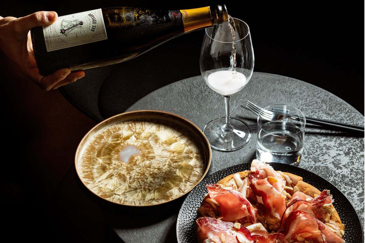 I calici di bollicine possono essere accompagnati da coquillage o crudo di pesce oppure semplicemente con le focacce gourmet, una selezione di salumi italiani e spagnoli, formaggi francesi oltre a raffinatezze come il caviale Oscietra e le alici del Cantabrico.
