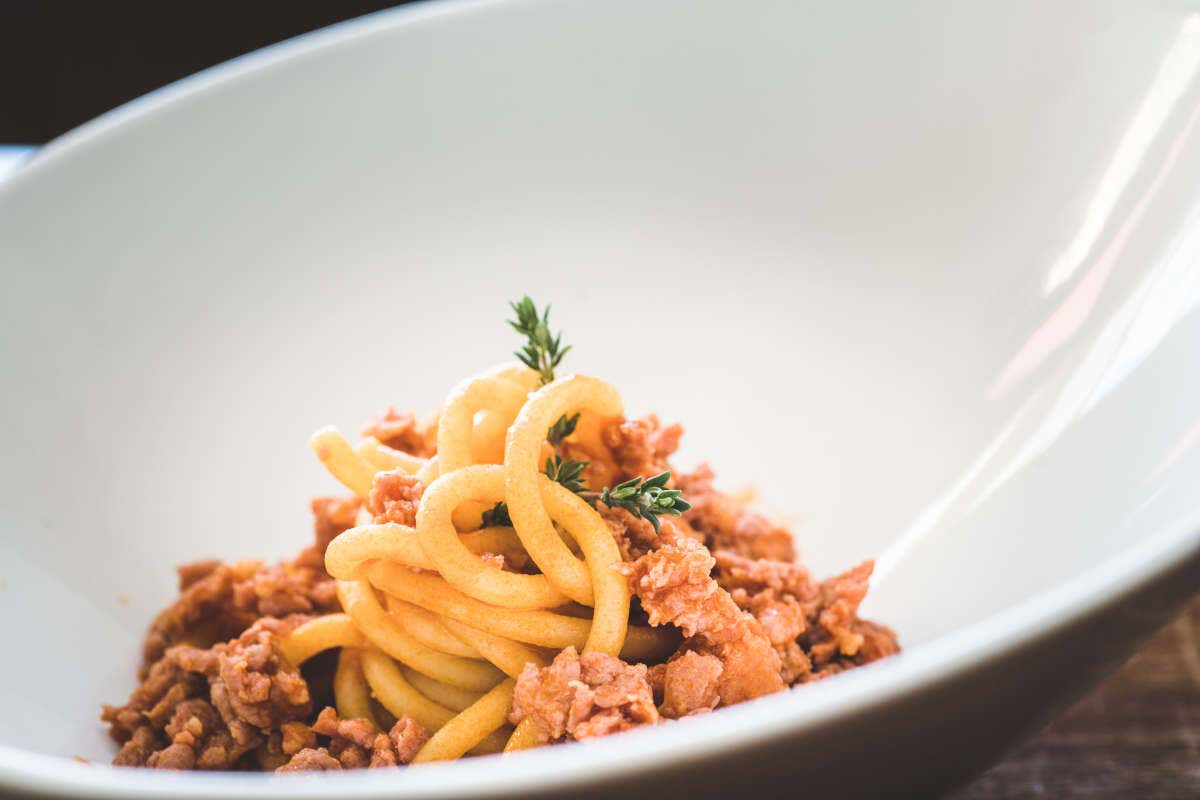 Bigoi col pestöm, ricetta realizzata da Carlo Bresciani dell'Antica Cascina San Zago (Bs)