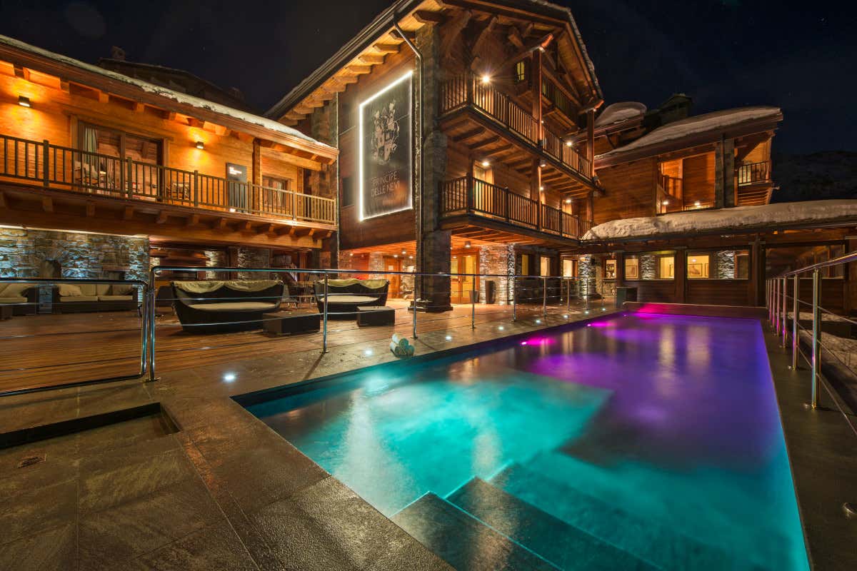 L’Hotel Principe delle Nevi, situato in una posizione privilegiata sull’Alpe Giomein, nella località montana di Breuil-Cervinia, tra le piste da sci, è stato progettato dallo Studio Bettiol Architecture di Aosta e ha visto l’intervento in due momenti distinti, coronando una collaborazione tra la committenza, la famiglia McNeill, e lo studio di architettura Bettiol Architecture iniziata nel 2008. Due interventi architettonici e due identità che hanno dato vita a una struttura originale e contemporanea caratterizzata da un concept ben definito: offrire ai propri ospiti un’esperienza di soggiorno unica, con uno stile lineare ma allo stesso tempo sofisticato e curato nei minimi dettagli per ridefinire il concetto di ospitalità proponendo nel panorama di Cervinia un design italiano moderno, chic e contemporaneo, montano e al contempo dal tocco classico di uno chalet.