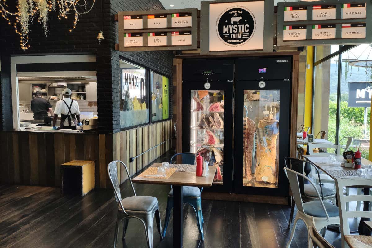 Tutta questa ricerca dell’ingrediente di qualità e della perfezione farcita ha portato Andrea Marti e Massimo Pasqual a costruire un menu fatto da 7 hamburger fissi, più alcuni in special edition che cambiano periodicamente. Il Ciociaro, ad esempio, ricorda le ricette romane ed ha al suo interno una salsa cacio e pepe e guanciale croccante. Ma c’è anche il Bari Vecchia, che parla di Puglia a ogni morso: hamburger di cavallo, cime di rapa, burrata, un rub (mix di spezie) al calzone di cipolla e molto altro. Noi abbiamo assaggiato il What the foie gras, costruito in collaborazione con il celebre food influencer Massimo Novati, in arte Mocho: un’esperienza, più che un panino, in cui s’impilano senza confondersi pane artigianale tipo bretzel, doppio smashed burger di Black Angus USA, scamorza affumicata, caramello salato, scaloppa di foie gras alla piastra, anelli di cipolla avvolti nel bacon e fritti, salsa mystic. E qualcosa di mistico si sentiva pure nel degustare le costate di Frisona (acquistate a fine carriera dal Consorzio del Parmigiano Reggiano), e poi di Black Angus neozelandese, dato che il duo Marti-Pasqual si onora di sperimentare e inseguire la qualità anche nel campo delle costate, meticolosamente frollate e grigliate. Al punto che parlare semplicemente di costata alla griglia non rende minimamente l’idea: ogni taglio ha un suo gusto e odore caratteristico, e noi ci ricorderemo dell’animale neozelandese per l’odore di selvatico e la resistenza alla masticazione delle fibre muscolari. Una peculiarità che, per nostra fortuna, resterà ignota ai palati sfibrati dalla consuetudine di ingollare scaloppe inconsistenti e vaporose, che ricordano il budino più che la carne.