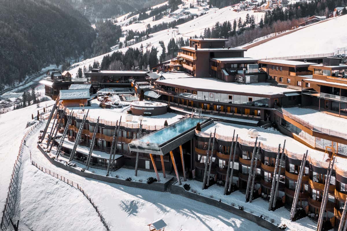 L'Alpin Panorama Hotel Hubertus è un'oasi di puro benessere che va ben oltre il concetto di lusso: l'hotel, infatti, è la sintesi di un progetto avveniristico. Tra gli angoli più iconici anche la piscina a sfioro “Sky Pool”: un autentico capolavoro architettonico, unico nel suo genere. Lunga 25 metri e riscaldata a 33°C tutto l'anno, esce a sbalzo sulla valle e, con la stessa levità della Spa, sfida il vuoto anch'essa e si proietta dalla parte anteriore dell'Alpin Panorama Hotel Hubertus. Posizionata a circa 20 metri di altezza, con una parte a fondo vetrato, sembra fluttuare sui prati davanti alle vette dolomitiche, ai piedi di Plan de Corones. Un'emozione che permette di sfiorare contemporaneamente terra, acqua e cielo e dona una sensazione di libertà. Per gli ospiti anche programmi active e un mondo wellness innovativo da vivere nei 7mila metri quadrati con 9 differenti saune. Oltre alla piscina outdoor, il relax whirlpool outdoor (37°C) con vista da sogno sulle montagne, la piscina outdoor con acqua salina (33°C) dalle proprietà benefiche, il whirlpool outdoor (37° C), la piscina sensoriale indoor (30°C). A ciò si aggiungono le tre vasche idromassaggio della Sky Spa Heaven & Hell: una vasca idromassaggio per sedersi, una vasca idromassaggio per sdraiarsi, una vasca idromassaggio per nudisti.
