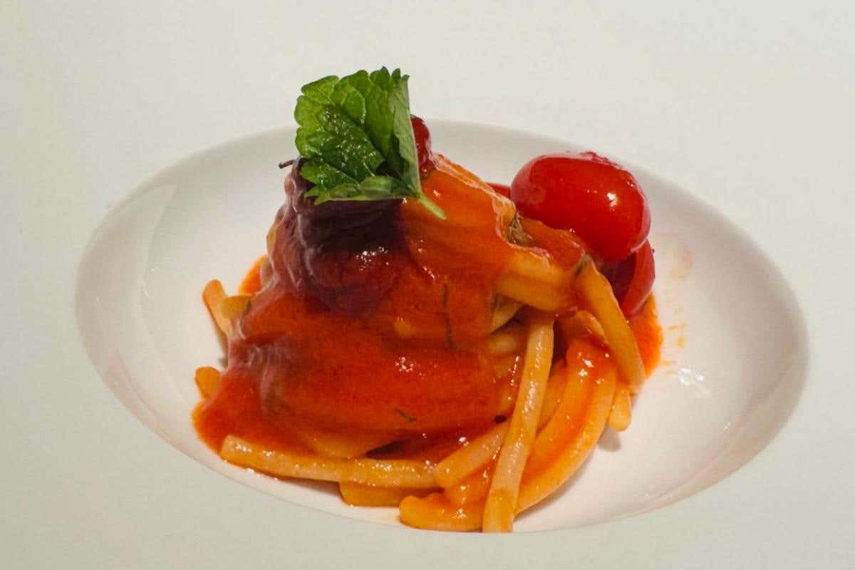 E che dire degli Spaghetti che, prima di essere portati in tavola, sono preceduti da un piatto con foglie di tabacco. Dopo che le narici si riempiono dell'aroma dolciastro e secco, il gusto in bocca esplode con un'intensità senza pari, superando ogni pregiudizio o dubbio su una pasta che gioca con un abbinamento proprio col tabacco, pur avendo fra gli ingredienti anche caffè e ghiande che fanno da accompagnatori.