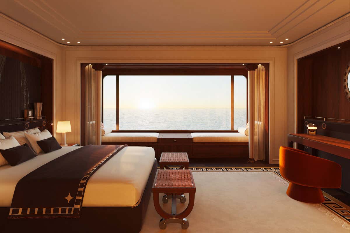 Le 54 suite, di dimensioni che vanno da 45 a 230 metri quadrati, sono un inno alla privacy e al comfort. Distribuite su diversi ponti, ciascuna suite è stata concepita come un rifugio accogliente, completo di grandi vetrate panoramiche che offrono una vista mozzafiato sul mare. «Le suite dell’Orient Express Corinthian sono pensate per rilassarsi, sognare, scrivere e ammirare il mondo che scorre», spiega d’Angeac. Ogni dettaglio, dai pavimenti in marmo alle finiture in pelle e legno pregiato, è stato realizzato da artigiani francesi.