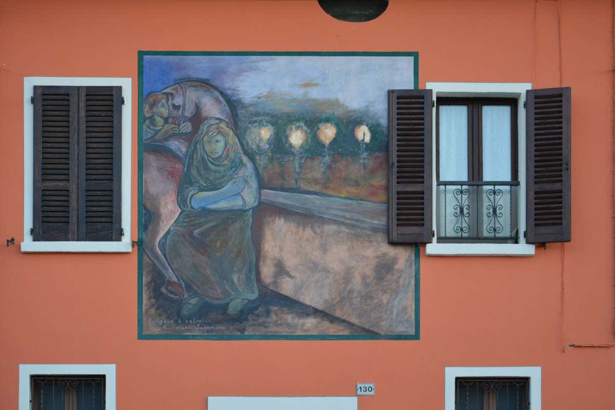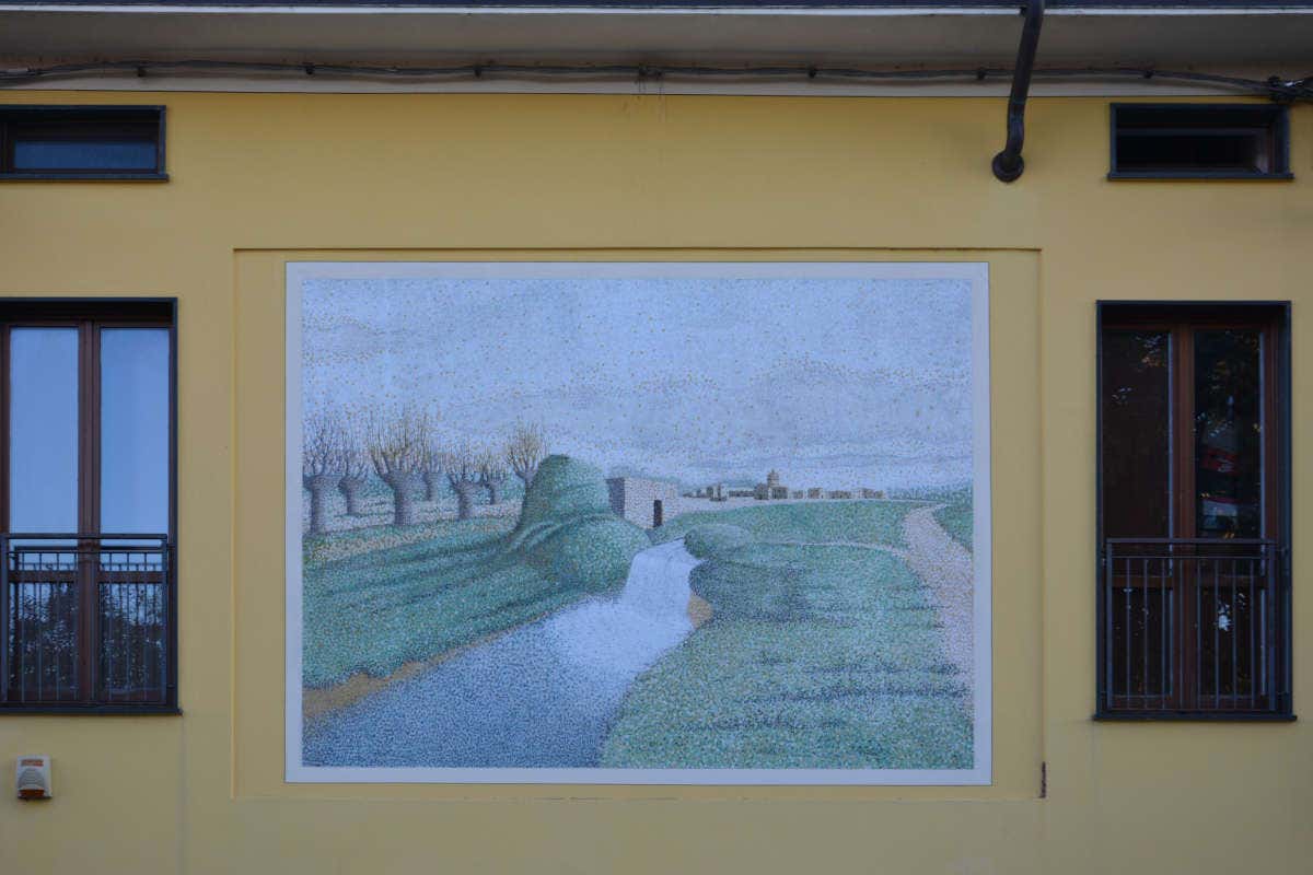 Continuando la discesa verso sud, si arriva a Calcio (Bg), dove la bellezza dei circa 50 murales che decorano il paese lo rendono una galleria a cielo aperto. Dagli anni '90 l'amministrazione comunale abbraccia l'idea di Assipad (Associazione italiana paesi dipinti) e da allora quasi 40 artisti, tra i quali Angelo Boni e Giovanni Repossi, hanno contribuito al progetto con le loro opere.
