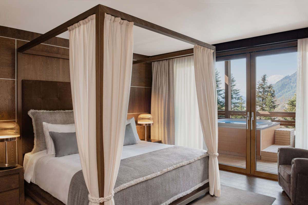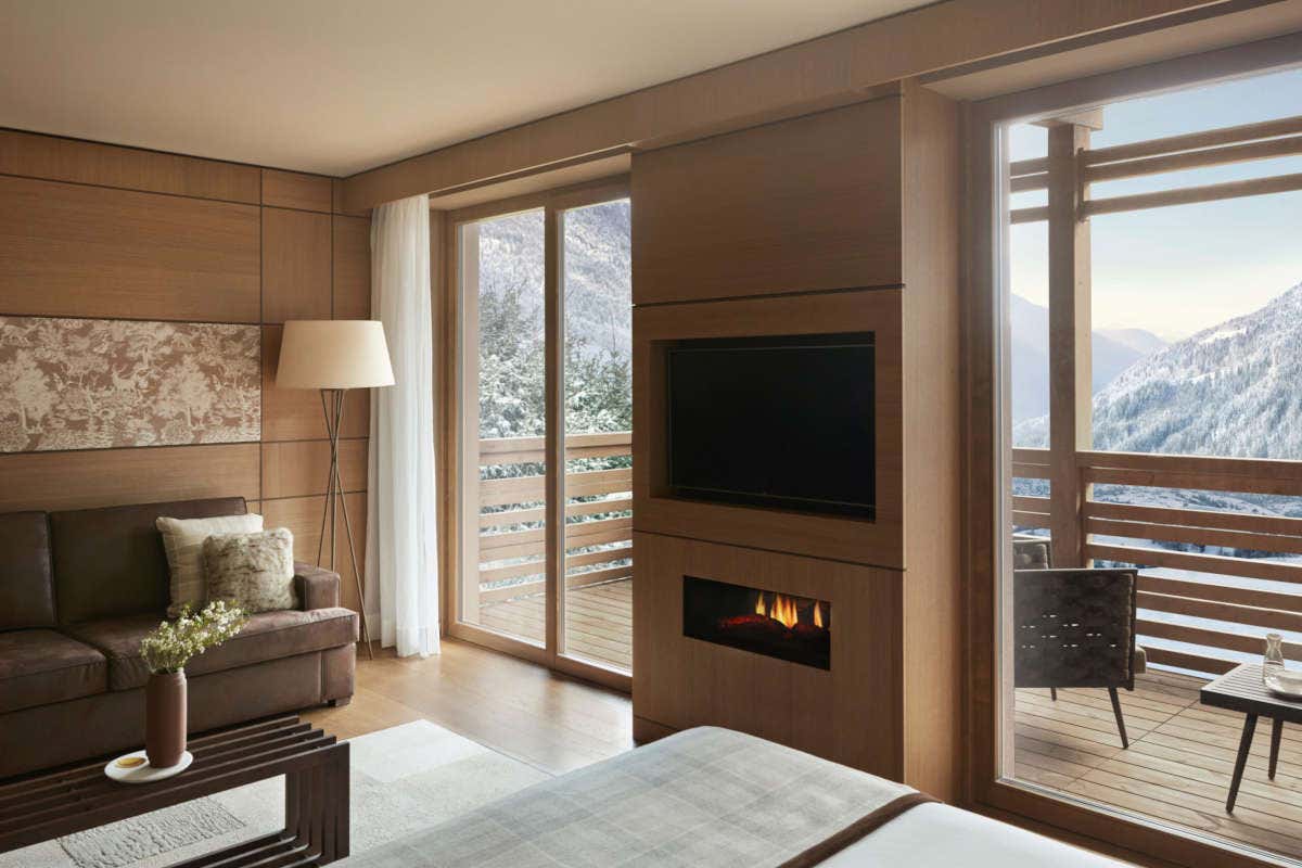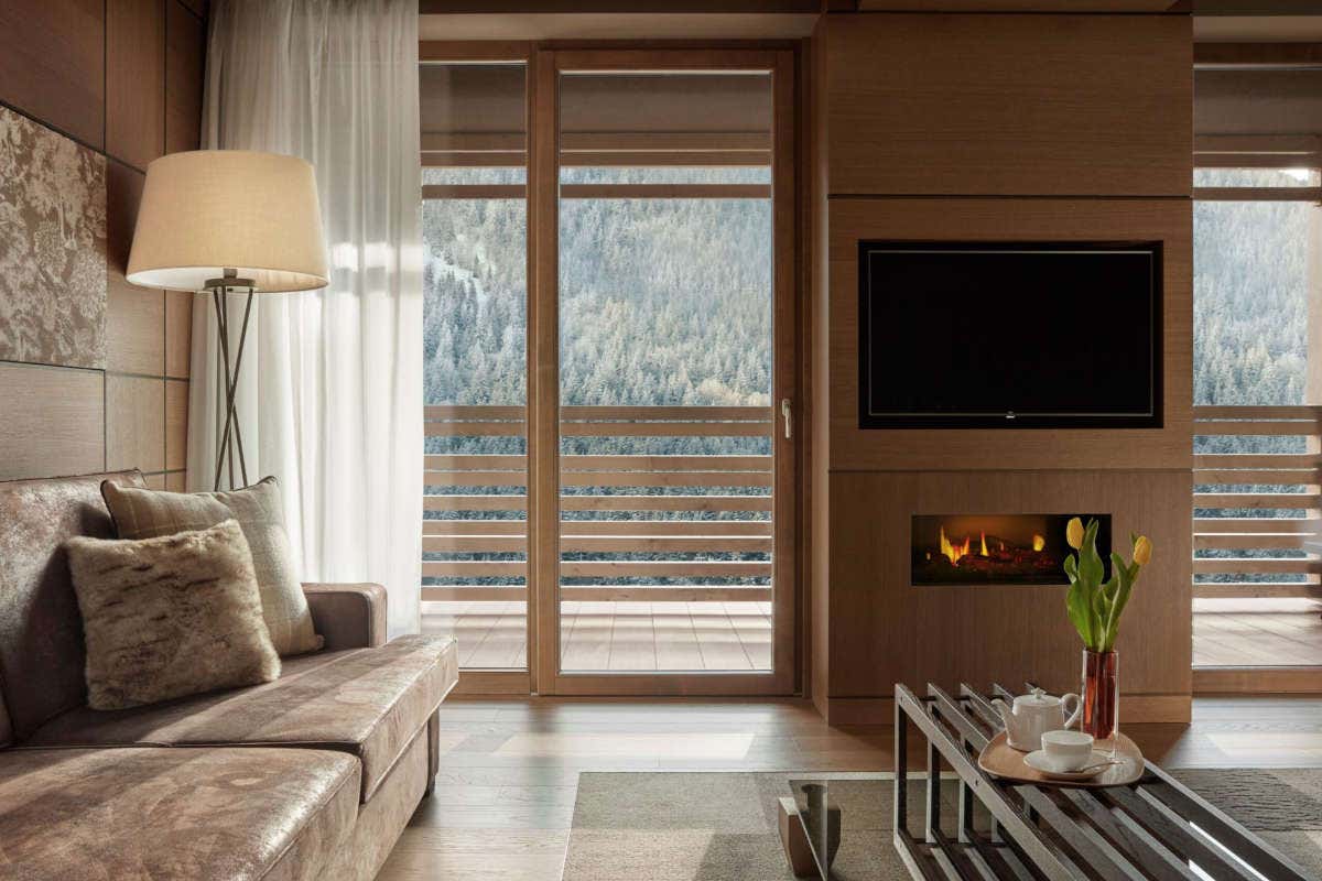 Le camere, suite e residenze private sono progettate per offrire un comfort esclusivo, con ampie finestre che permettono di ammirare la vista mozzafiato sulle Dolomiti direttamente dal proprio alloggio.
