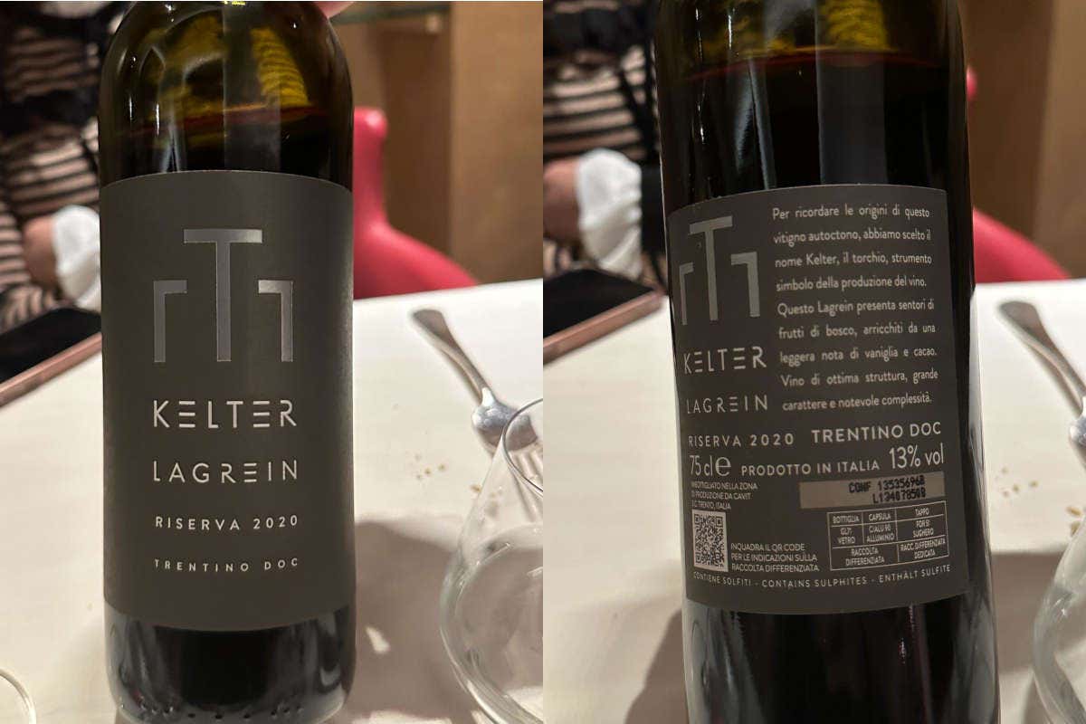 Per il vino, è il turno del secondo rosso in lista: il Kelter Lagrein Riserva Trentino Doc 2020, un Lagrein in purezza di colore rosso rubino dalle sfumature violacee. Al naso si avvertono vividi sentori di frutti di bosco, arricchiti da gradevoli percezioni speziate. L’assaggio è pieno, corposo e strutturato, non privo di equilibrio ed eleganza, con tannini maturi ad accompagnare la lunga persistenza al palato.