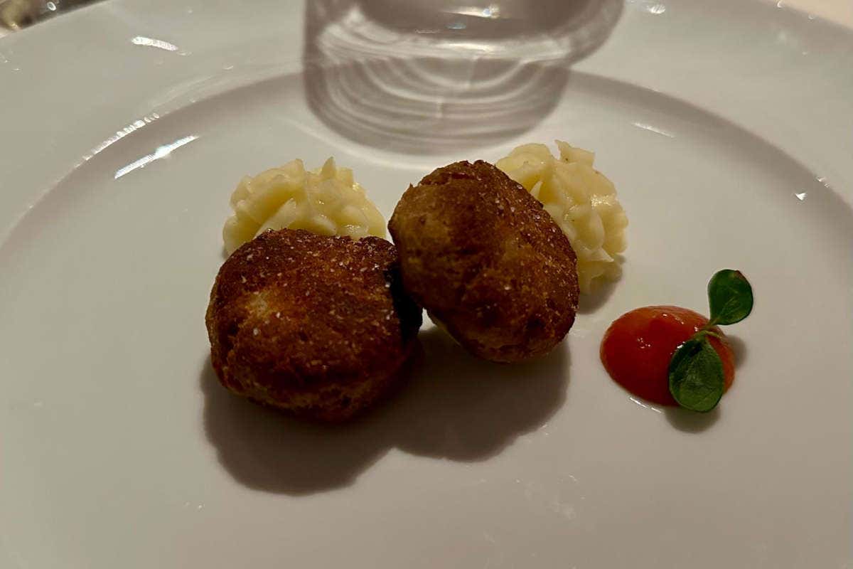 Amouse Bouche: cannolo di pane, mondeghili e brasato