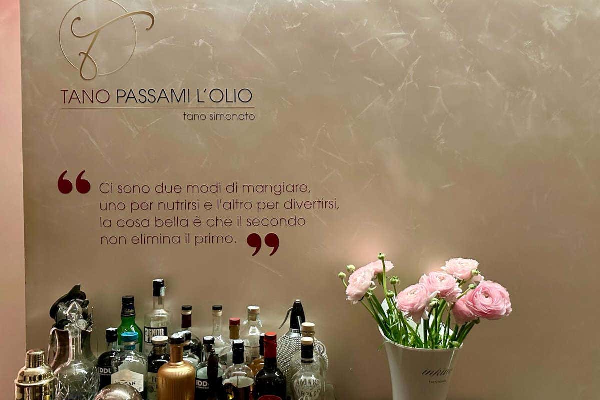 “Tano, passami l'olio!” È ciò che viene quasi spontaneo dire quando ci si siede ad uno degli eleganti tavoli del ristorante di Tano Simonato, patron e chef del locale di via Francesco Petrarca 4, a pochi passi dal Parco Sempione e dalla stazione Cadorna, dove accoglie i suoi ospiti in un tempio dell'olio extravergine d'oliva. L'ambiente è raffinato e riservato, con giochi di luci e quadri d'autore alle pareti che conferiscono al luogo l'aria di una vera e propria galleria d'arte.