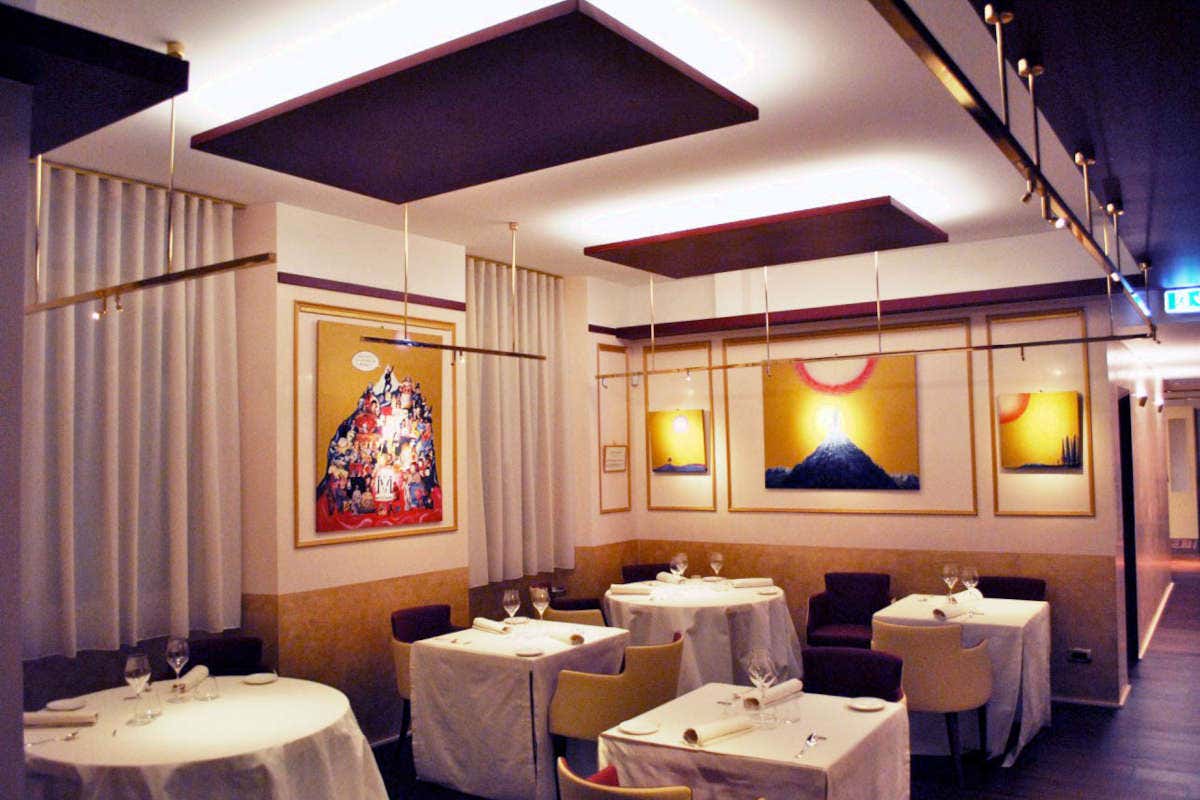 La filosofia culinaria di Tano Simonato può essere riassunta in un concetto semplice ma profondo: «Ci sono due modi di mangiare, uno per nutrirsi e l'altro per divertirsi, la cosa bella è che il secondo non elimina il primo». Questa citazione scritta vi darà il benvenuto sulla parete di fronte all'ingresso, appena saliti gli scalini che conducono alla Sala Petrarca.