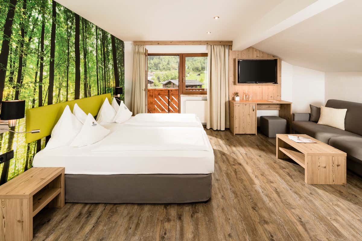 La camera matrimoniale di una delle nuove family deluxe suite dello Schneeberg Family Spa Resort