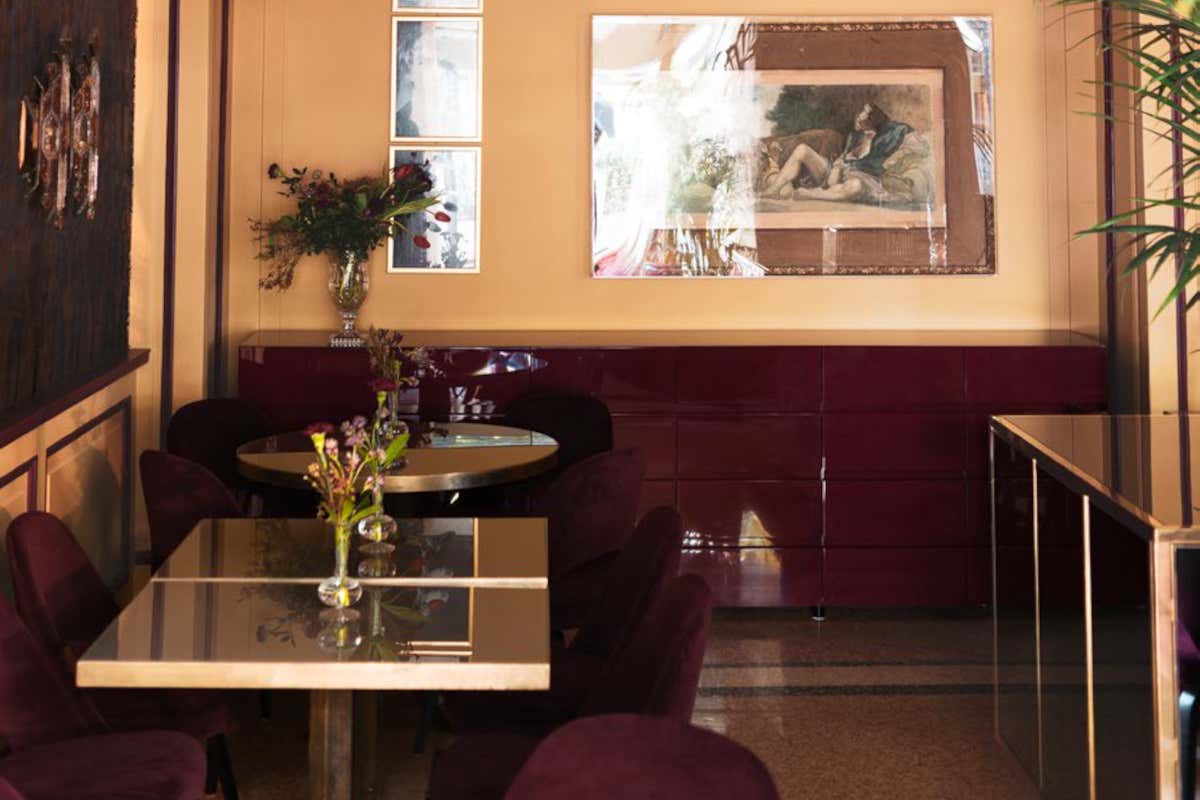 Il Caruso Nuovo Bistrot è stato oggetto di un importante restyling a cura di Dimorestudio che ha mantenuto i dettagli storici dell’ambiente, riportando alla luce uno spazio con colonne, intarsi, pavimenti in graniglia.