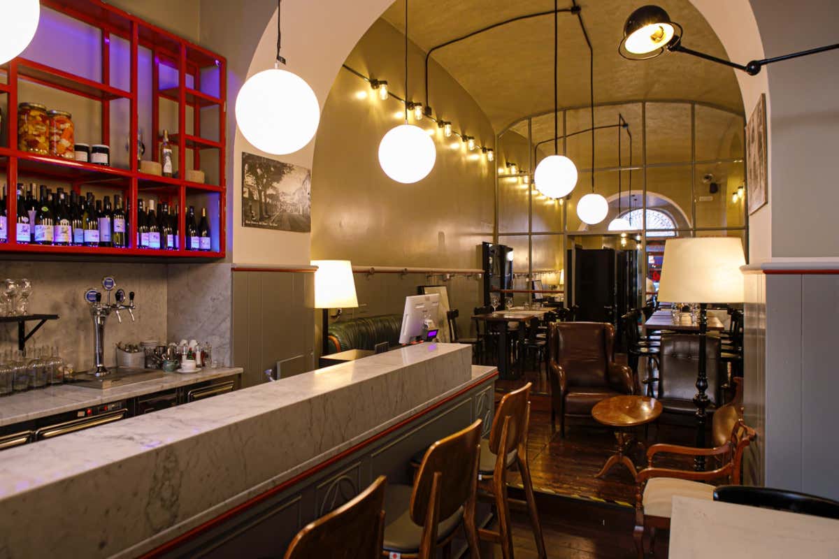 L'ambiente caldo, accogliente e curato nei dettagli. Ma, prima grande novità, la sala grande, di circa 50 mq. I divani, già presenti negli altri locali, fanno subito pensare a un salotto di casa; ma qui in più ci sono i tavoli dove accomodarsi e un grande bancone, per un totale di circa 30 coperti (20 sui tavoli e 10 sui divani).
