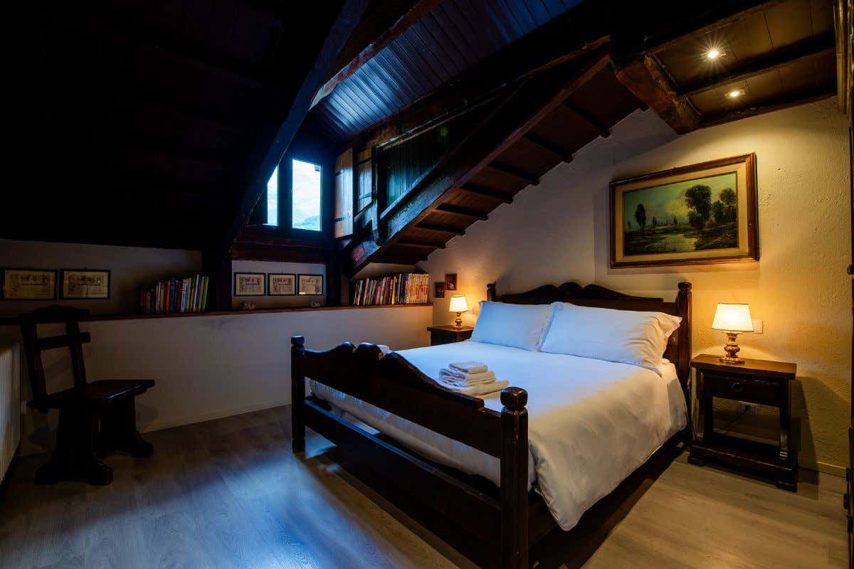 “Suite Acqua” (2° piano / 50 mq, occupazione massima 2 persone): un'antica soffitta completamente ricostruita con tetto a falda in legno e pietre recuperate. Dalla finestra e dal terrazzo, una meravigliosa vista sulle montagne circostanti e sul torrente Bele. Caratterizzata dalla presenza di una vasca circolare.