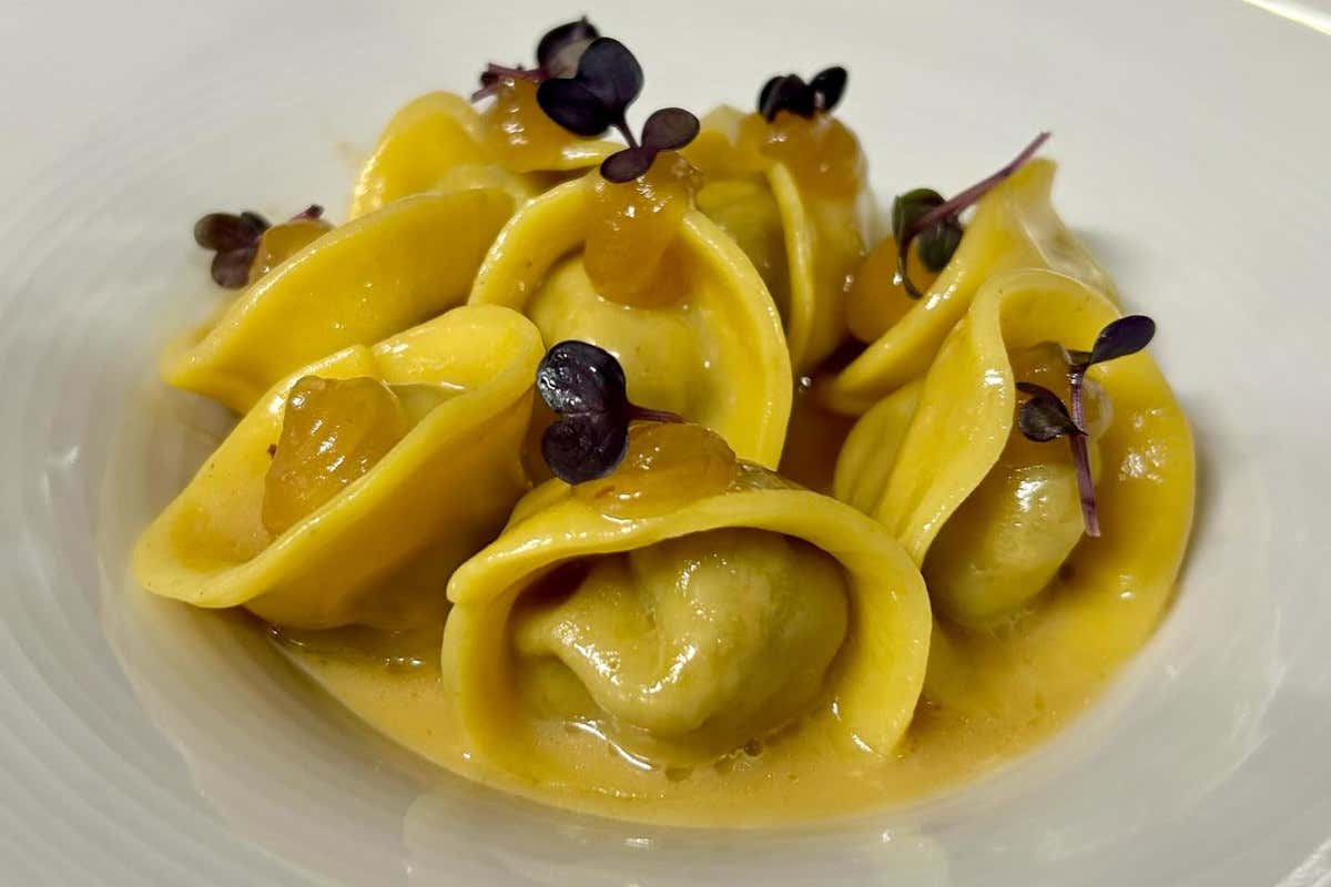 Tortelloni di stracotto di manzo con la guarnizione di mostarda di pere di Osteria Il Platano. Foto: Facebook Osteria Il Platano