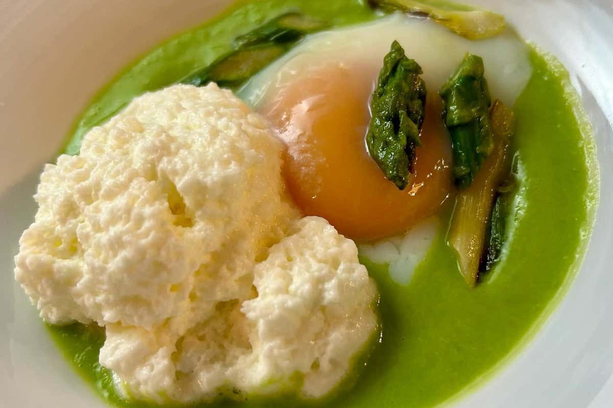 Uovo con spuma di stracchino di Montebronzone e scaglie di asparago di Osteria Il Platano. Foto: Facebook Osteria Il Platano