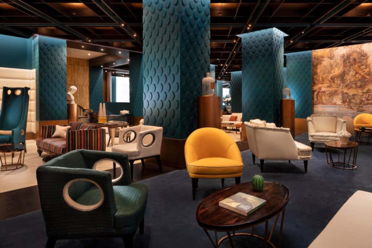 Un particolare della hall di ingresso del Sina Bernini hotel