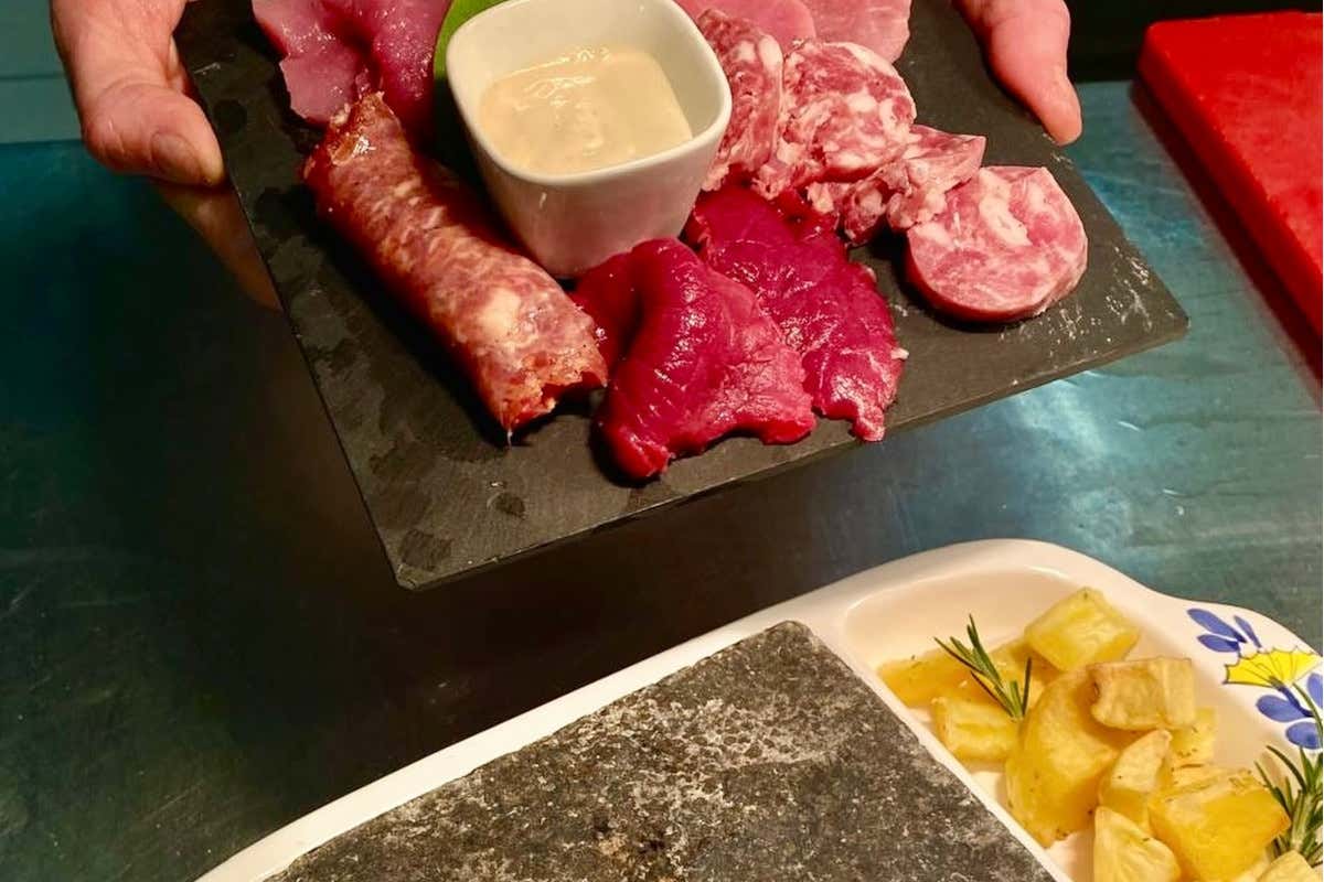 Il menu, racconta Massimo Sartoretti, accontenta tutti i palati, dal goloso di carne al vegetariano, con portate che raccontano il territorio, seguendo le antiche ricette o la fantasia dello chef. È difficile stancarsi delle diverse proposte, ma ci si affeziona facilmente ai nostri piatti di sempre, come l’antipasto di salumi, prodotti artigianalmente (ben 11!), tra cui spiccano il crudo di Masera, il lardo alle erbe e la Mortadella Ossolana (presidio Slow Food).