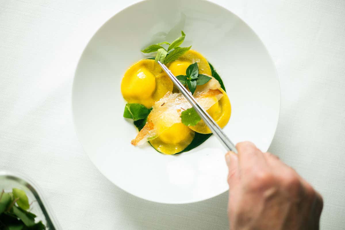 - Essenza: un omaggio al mondo vegetale con piatti come cappellacci con borragine, ricotta di pecora e brodo di spugnole, e sedano rapa con gelato alla mela Granny Smith e maionese al levistico.