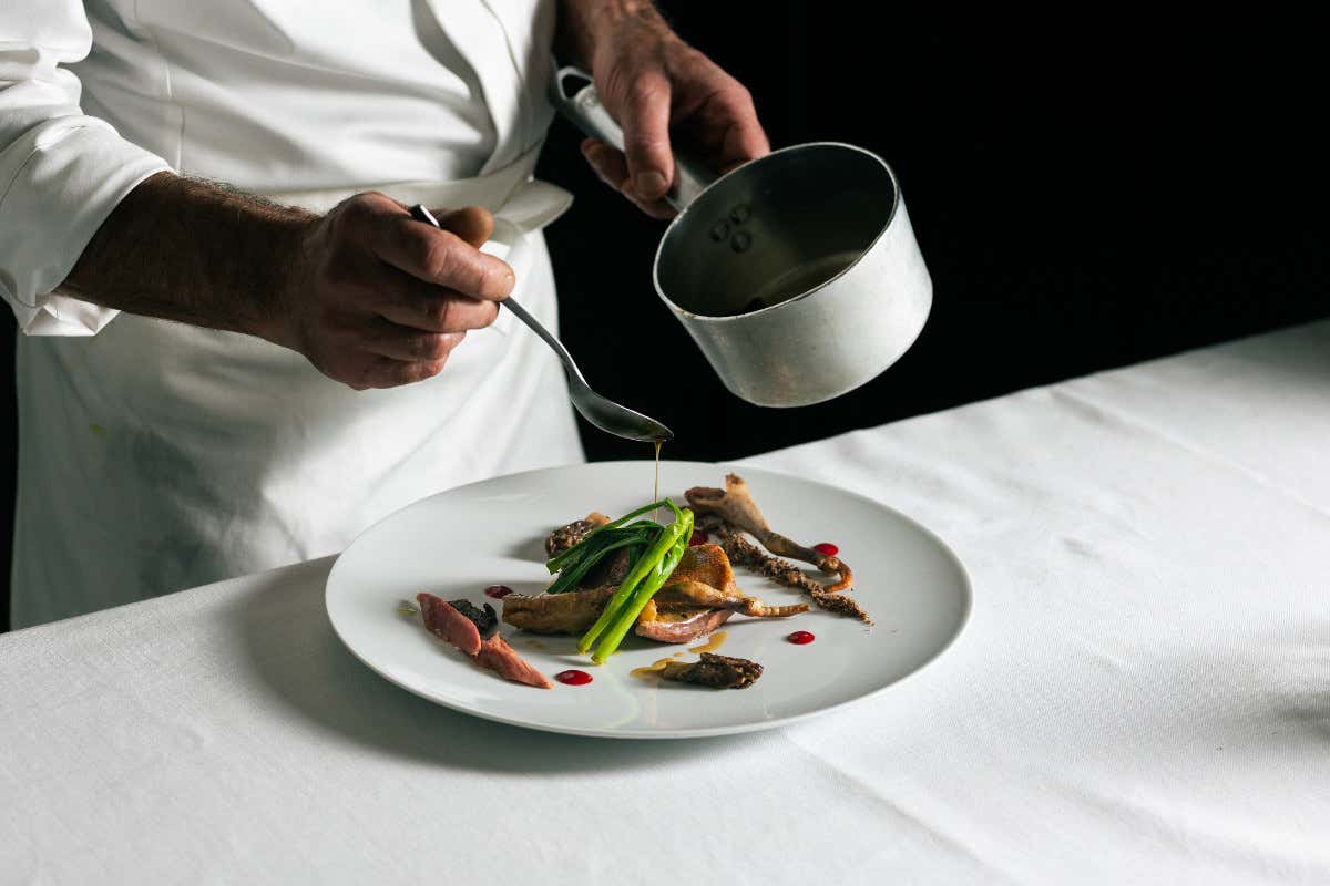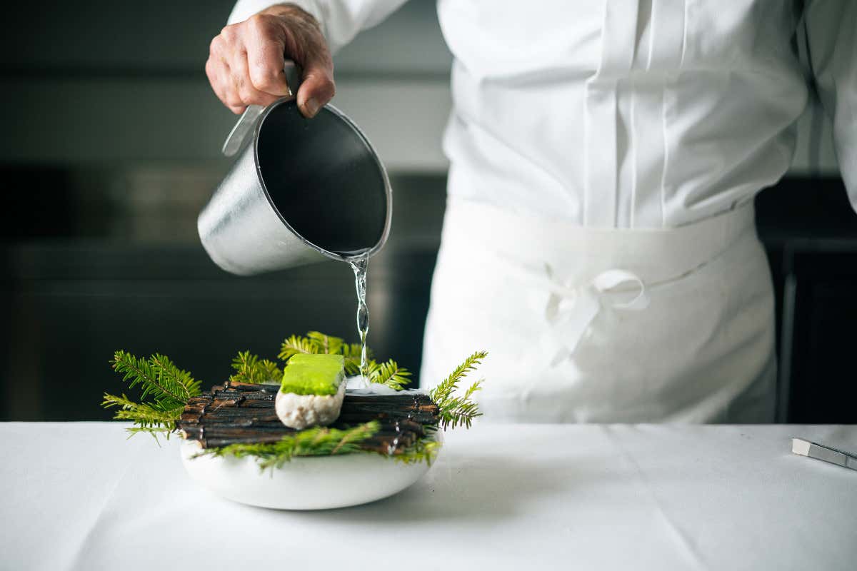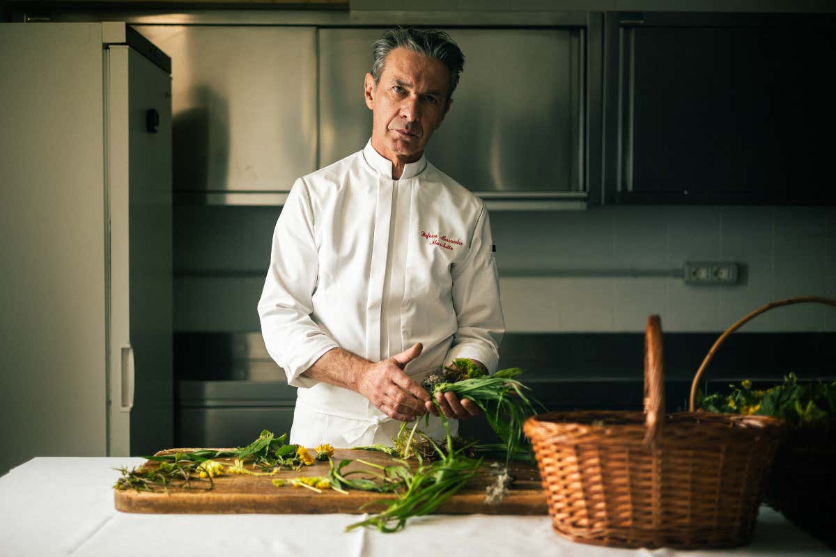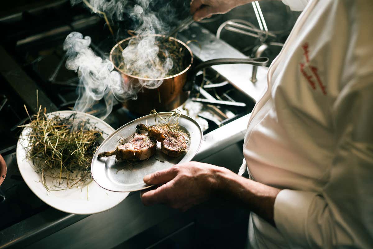Le carni, provenienti da allevamenti vicini, vengono disossate in cucina con tecniche tradizionali per valorizzare ogni taglio. «La mia è una cucina del bosco, radicata nell'eredità del territorio e nella natura che ci circonda», afferma lo chef Marchetto. Questa filosofia si traduce in un rapporto diretto con la materia prima, un rigoroso lavoro artigianale e una continua ricerca di equilibrio tra sapori audaci e rispetto per la montagna.