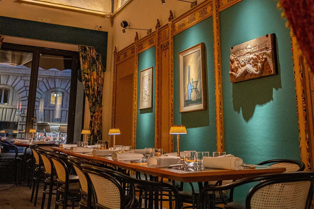 Per progettare gli interni delle storiche sale del locale, il titolare Antonio Palumbo della Famiglia De Angelis, proprietaria anche del "Vico Pizza&Wine" di Capri, ha scelto lo studio Rpm Progect di Roberto Antonbenedetto. Sculture, macchiette napoletane, pezzi vintage e liberty, come il grande lampadario, creano un eclettismo armonico che non contrasta con la solennità del luogo e con le decorazioni a grottesche del soffitto. Pezzo di gran pregio è la boiserie in legno, i cui committenti furono i Florio di Palermo, realizzata dagli stabilimenti Ducrot nel 1908 su progetto di Ernesto Basile.