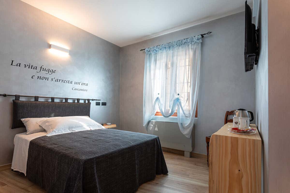 Le stanze includono aria condizionata, un bollitore con tè e tisane, una macchina del caffè, un armadio e una smart TV. La struttura, una dimora storica ristrutturata, richiama l'atmosfera del poeta anche negli arredi, caratterizzati da tonalità pastello come sabbia, pesca, verde menta e rosa antico. Le finestre e i balconi garantiscono una buona luminosità, contribuendo a creare ambienti ampi e accoglienti. Gli ospiti hanno inoltre a disposizione un'area con macchina del caffè, bollitore e snack.