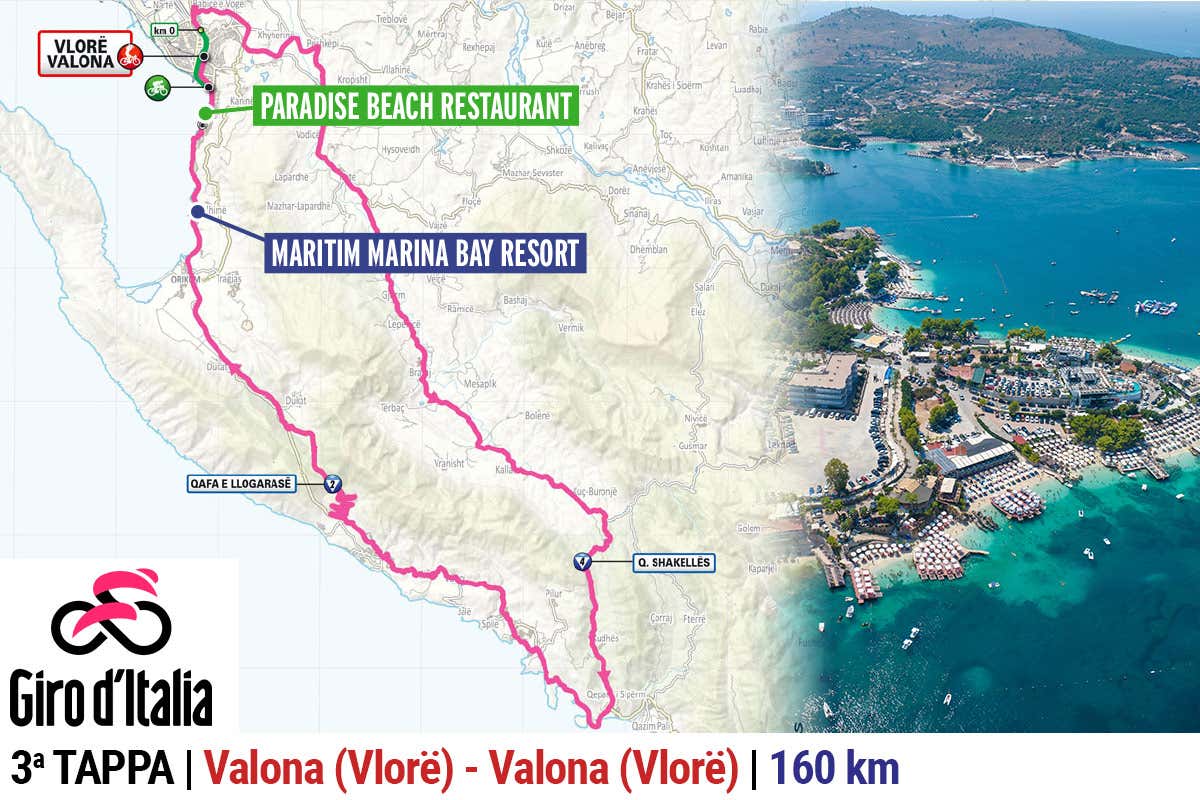 L'edizione numero 108 del Giro d’Italia prenderà il via dall’Albania, che per la prima volta ospiterà la Partenza della Corsa Rosa. La prima tappa, venerdì 9 maggio sarà una frazione di media montagna con partenza da Durazzo e arrivo nella capitale Tirana. La seconda tappa, sabato 10 maggio si corre lungo le strade di Tirana. È una cronometro individuale di 13,7 km. L’ultima tappa del trittico in terra albanese si svolgerà domenica 11 maggio con partenza e arrivo a Valona. Valona è la “culla dell’indipendenza” albanese.