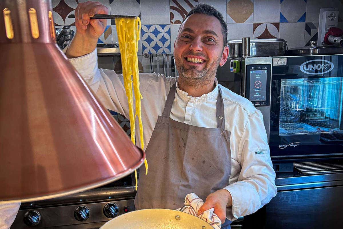 Tagliolino, erbe amare, carciofi e bottarga del ristorante Casa Buono di Ventimiglia (Im)
