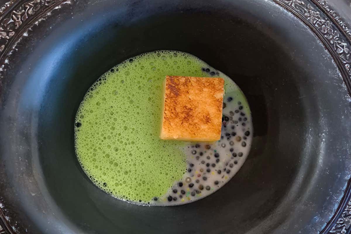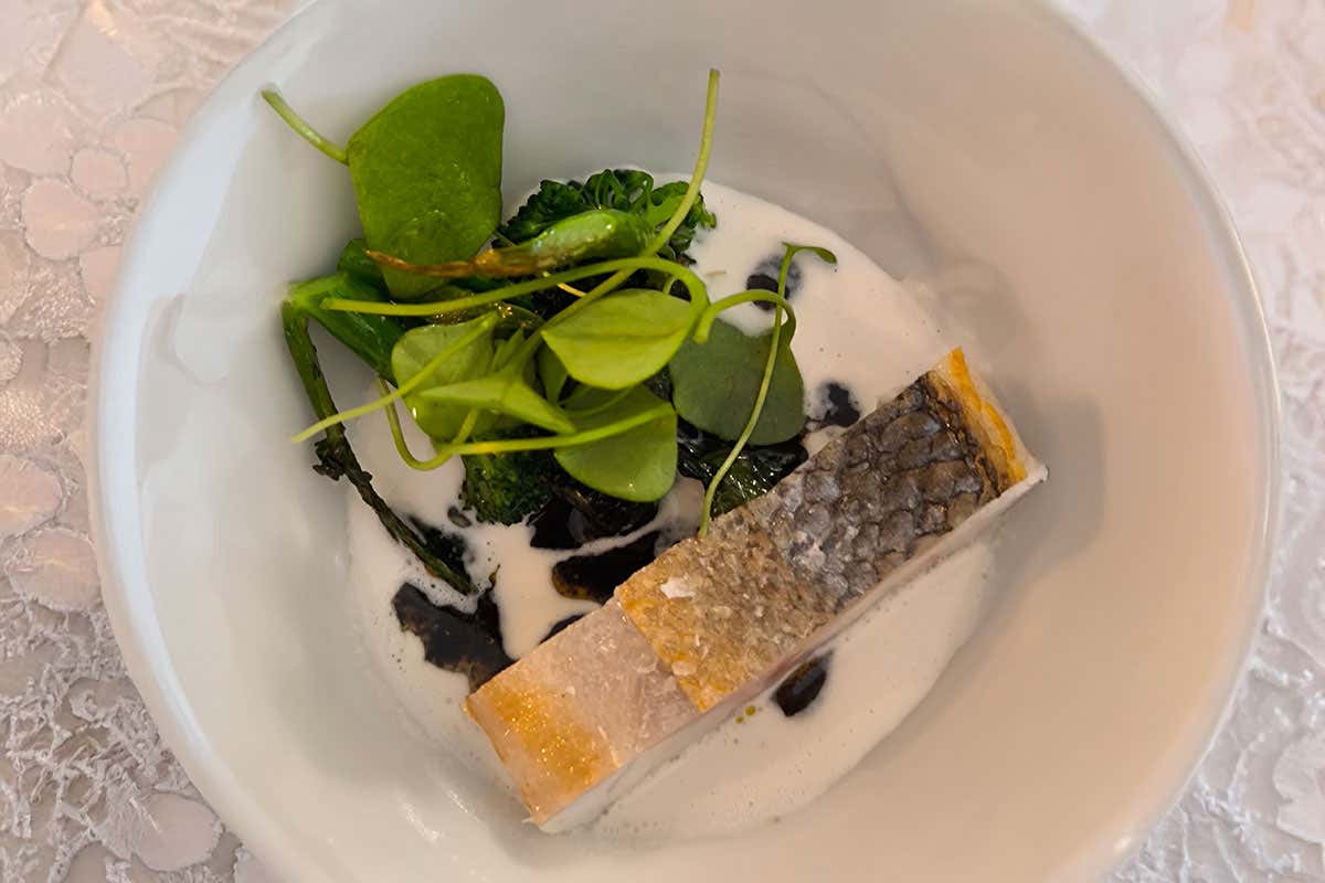 Pescato del giorno, latte di pinoli e alga Nori del ristorante Casa Buono di Ventimiglia (Im)
