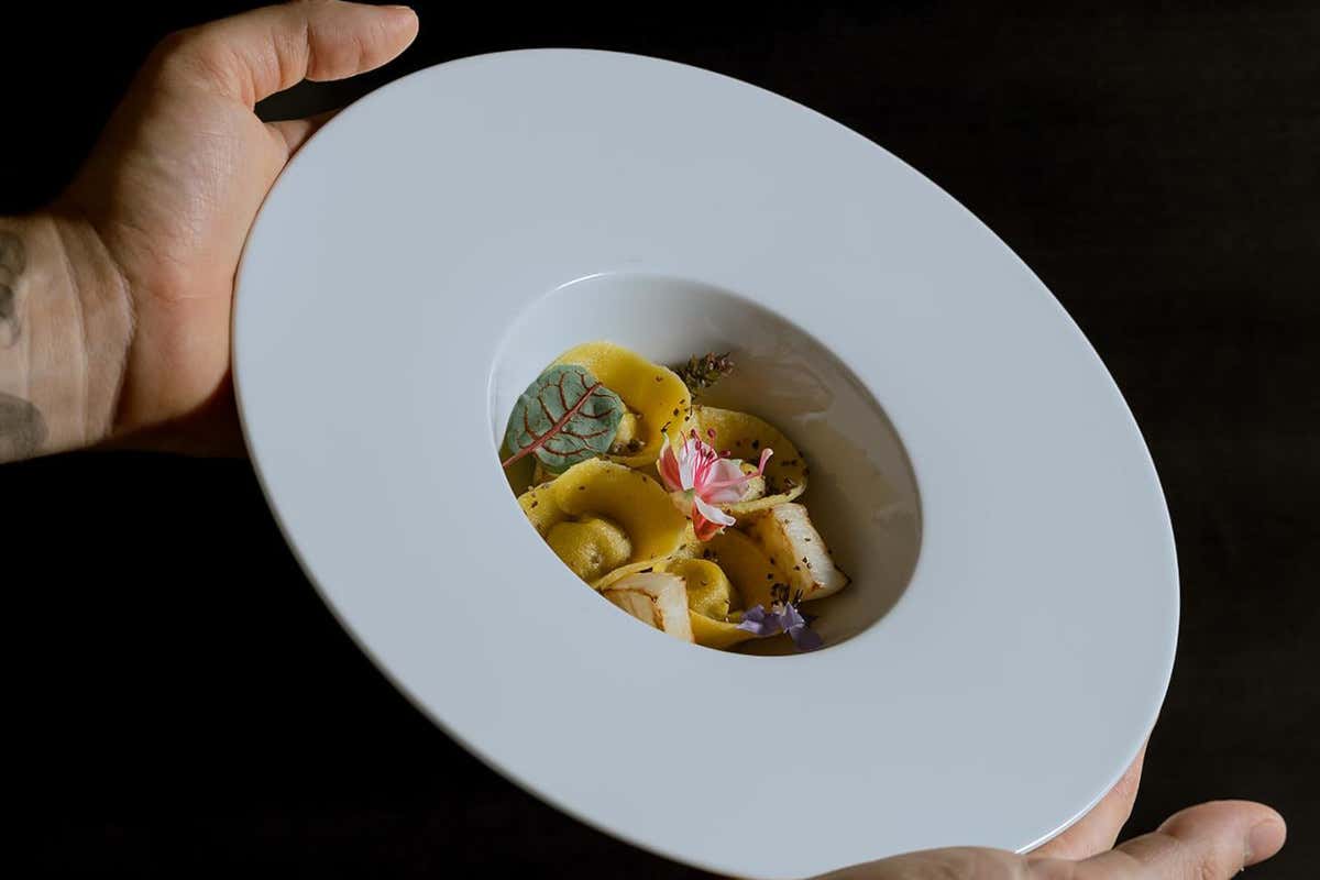 - Tortelli di cinghiale fatti in casa, daikon e guazzetto di funghi della Valsesia