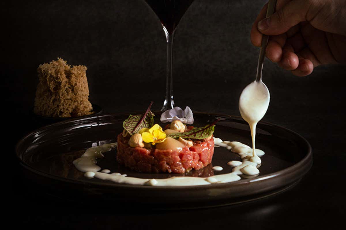 - Tartare di tonno, mousse di cioccolato bianco "Valrhona" e Pan Brioche