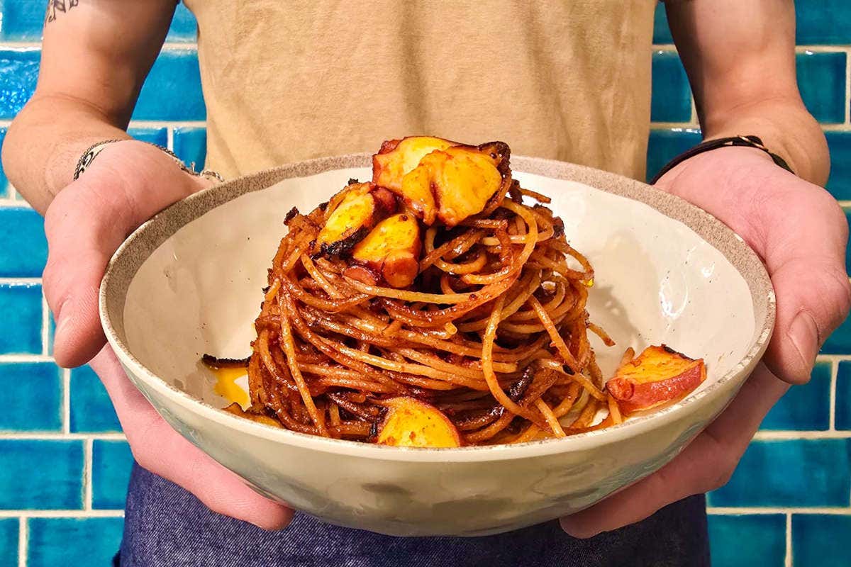 Altra novità è lo Spaghetto all'assassina, piatto barese della tradizione con abbondante pomodoro e peperoncino, a cui Peppe Guida ha aggiunto la variante del polpo arrostito. Un omaggio alla città di Polignano, dove Pescaria nacque nel 2015 per l’intuizione del founder Domingo Iudice.