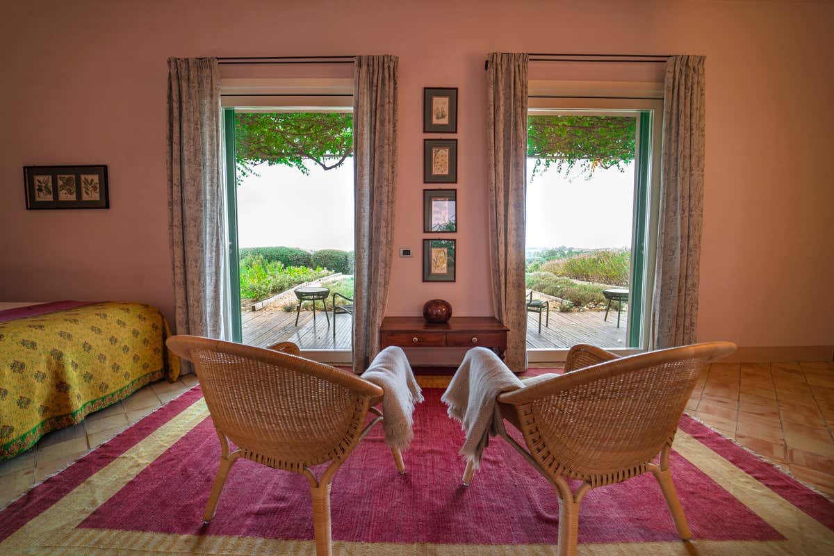 La Foresteria Planeta Estate è il punto di partenza. Un relais immerso nel paesaggio, a pochi chilometri da Porto Palo, affacciato su un mosaico di vigneti che si estende fino al mare. L’edificio, progettato per integrarsi nel contesto naturale, accoglie 14 camere, una piscina panoramica e spazi comuni dove ogni dettaglio - dai tessuti alle ceramiche - parla la lingua del territorio.