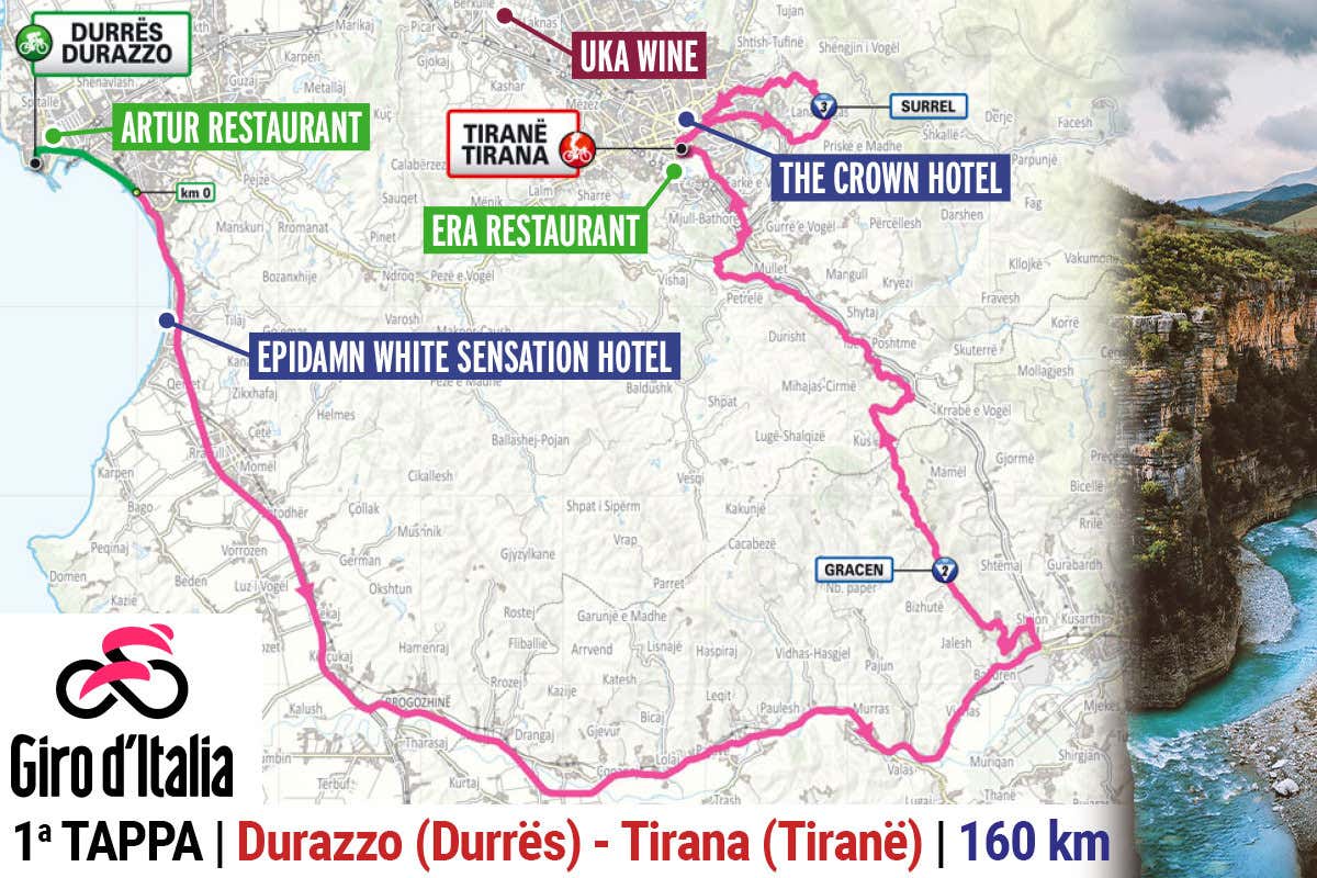 L'edizione numero 108 del Giro d’Italia prenderà il via dall’Albania, che per la prima volta ospiterà la Partenza della Corsa Rosa. La prima tappa, venerdì 9 maggio sarà una frazione di media montagna con partenza da Durazzo e arrivo nella capitale Tirana. La seconda tappa, sabato 10 maggio si corre lungo le strade di Tirana. È una cronometro individuale di 13,7 km. L’ultima tappa del trittico in terra albanese si svolgerà domenica 11 maggio con partenza e arrivo a Valona. Valona è la “culla dell’indipendenza” albanese.
