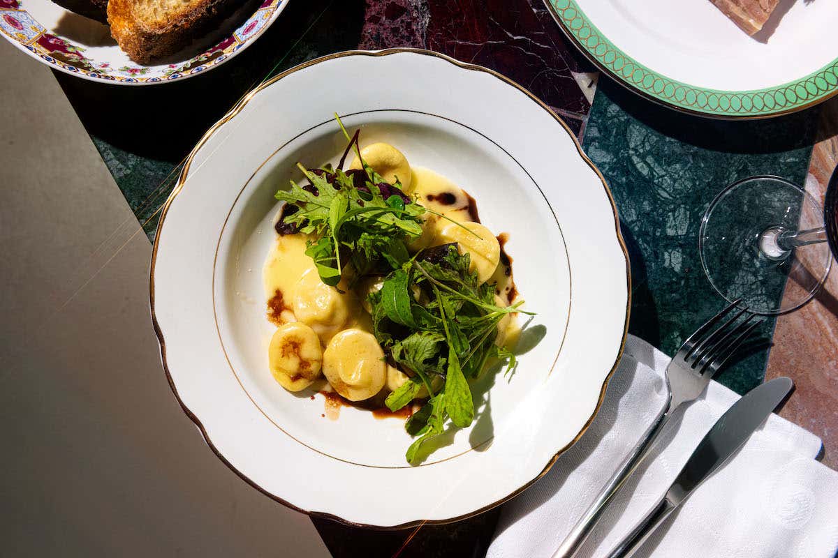 La proposta gastronomica si basa su una cucina italiana concreta, che punta sull’equilibrio tra i sapori e su ingredienti selezionati quotidianamente nei mercati locali. Non esiste una divisione canonica tra antipasti, primi e secondi: in carta ci sono 8-9 piatti fissi, aggiornati ogni due mesi, e 5-6 fuori menu settimanali.