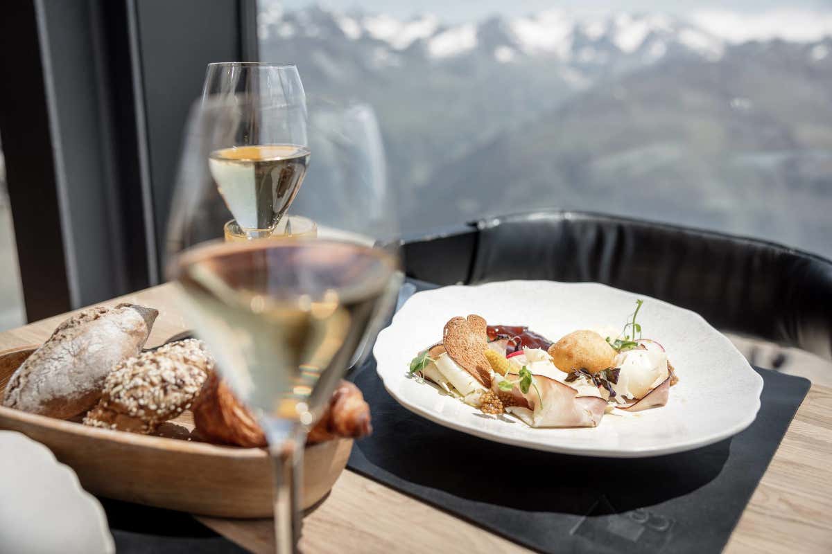 L'allevamento di pecore è gestito direttamente dalla struttura. Lo stile culinario è moderno, con influenze giapponesi ben dosate. Tra le proposte del menu a sei portate: gambero alpino con katsuobushi, bisque di pomodoro e yuzu, oppure pesce gatto tirolese con fave.