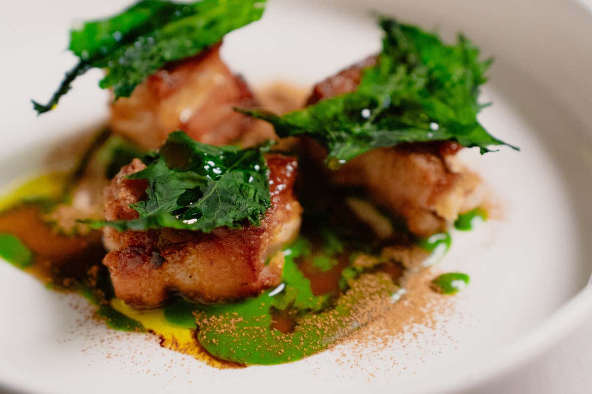 A chiudere, il “Coniglio leprino con paté di coratella e carote” è un omaggio sincero alla cucina rustica, riletto con mano moderna. Il gusto pieno del coniglio, razza autoctona di grande valore, dialoga con la coratella in una composizione raffinata, alleggerita dalle diverse consistenze della carota, tra crema e radice arrosto.