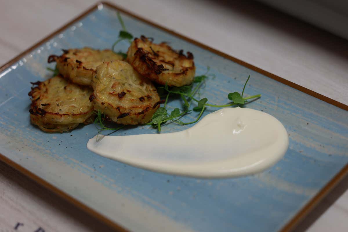 Rosti di patate e pesce ghiaccio con crema di yogurt