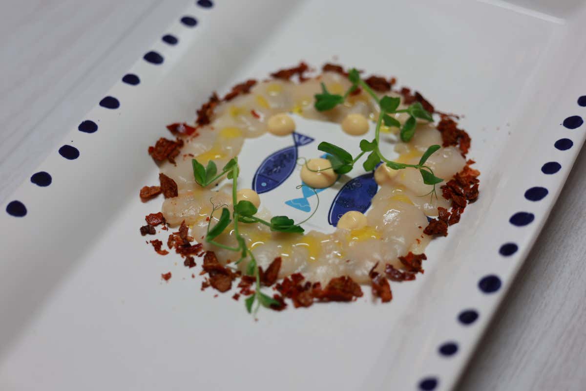 Carpaccio di capesante con maionese al corallo di capesanta e peperone crusco di Senise
