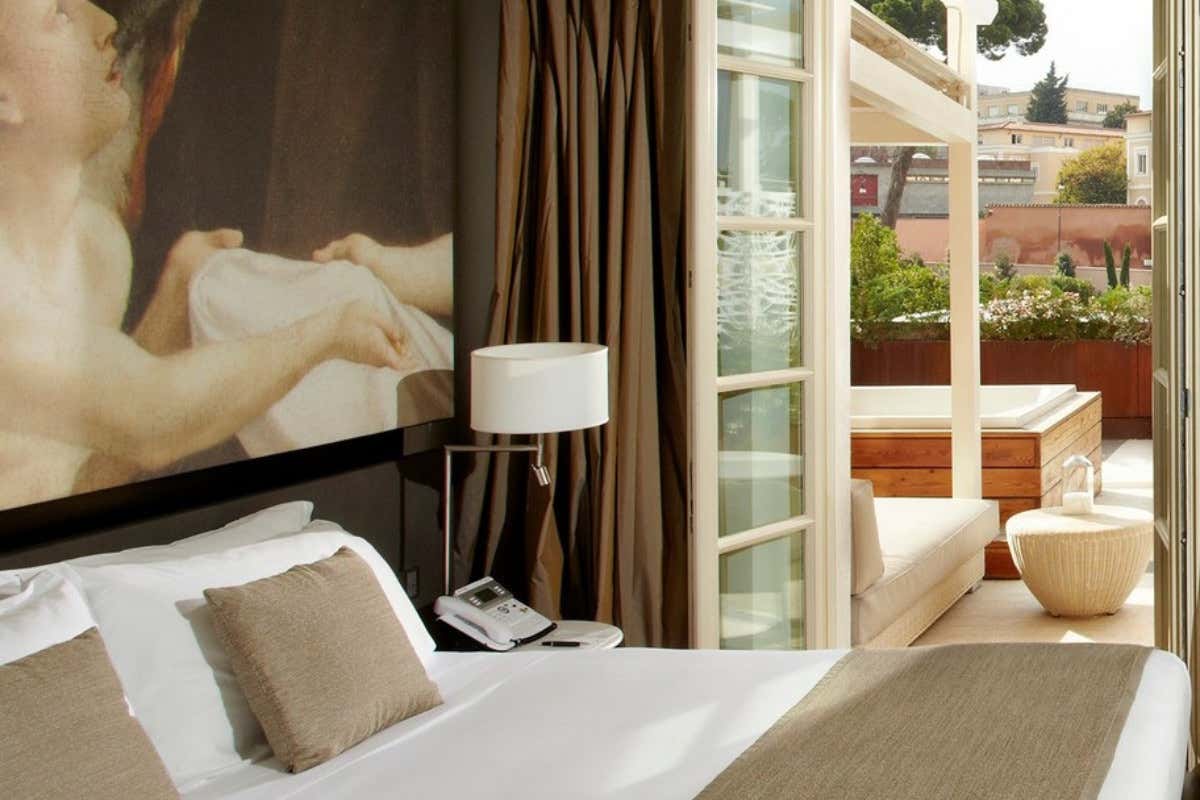 L’hotel, distribuito su sette piani per 9.000 m², propone 14 tipologie di alloggio, dalla Deluxe e Premier Room (23-28?m²) con bagno in pietra italiana, minibar, macchina da caffè e speaker Bluetooth, fino a spazi decisamente ampi e scenografici. Le suite di punta includono la Vatican Suite, con 70m² interni e terrazza panoramica di 125m² dotata di vasca idromassaggio e vista mozzafiato su San Pietro; la Panoramic Suite, con terrazza da 111m²; la sontuosa Emperor Nero Suite, con terrazza privata, vasca, palestra e 200m² di spazio esterno, e la lussuosa Agrippina Private Pool Villa, con piscina privata di 32m² nel giardino esclusivo. Tutte le camere sono caratterizzate da arredi di design, caffè in capsule, connessione Bluetooth, bagni in marmo o pietra pregiata e comfort pensati per un soggiorno premium.