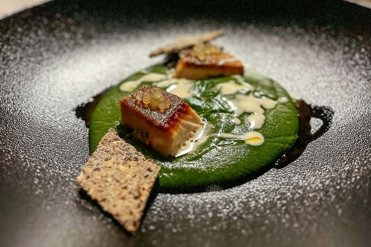 La cucina porta la firma dello chef Federico Rovacchi, che unisce radici emiliane e tecniche internazionali. Nei suoi piatti convivono ispirazioni italiane, cotture francesi e note orientali, con una cura particolare per la selezione di materie prime. Tra le proposte più interessanti, il “Rossini al mare” che abbina foie gras e seppia, e il “Cappelletto di Parmigiano” servito in brodo di cappone e verbena.