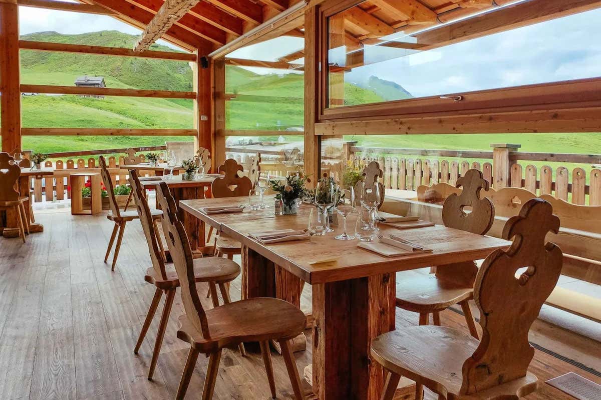 Lasciandosi alle spalle Cortina invece, per salire verso uno dei passi più scenografici delle Dolomiti, il Passo Giau, si arriva in un altro luogo di culto della cucina alpina: il Ristorante Da Aurelio. Una terrazza naturale sulle cime, con una vista suggestiva e una cucina che educa.
