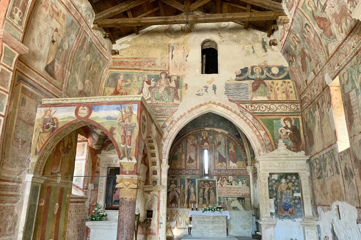 A Fossa (Aq) la chiesa cistercense a una navata di Santa Maria ad Cryptas sorge su un luogo già dedicato al culto della dea Vesta. Prezioso l’interno, caratterizzato da un composito palinsesto pittorico e scultoreo che si sviluppa a partire dal XIII secolo. Un sito dove l’intimità è tangibile. Di pregio gli affreschi bizantini.