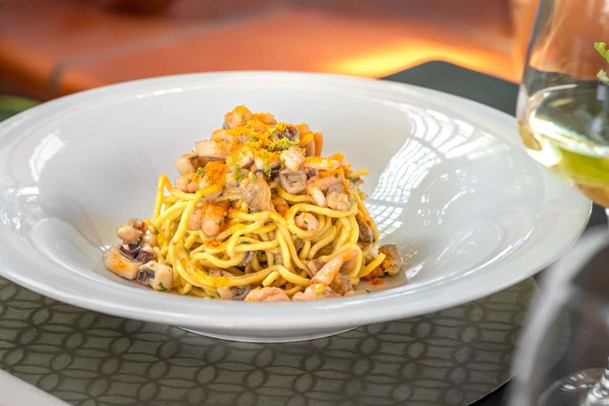 Ampia la scelta à la carte, ben assortita e stagionale, con qualche riferimento al Sud, come le Orecchiette con pesto di capperi, olive datterini gialli e polvere di taralli al peperoncino. Poi Tonnarelli all’uovo con vongole veraci, seppioline, calamari e moscardini del litorale laziale e Fettuccine con burro salato al tartufo. Tra i secondi, Carpaccio di Marango alle erbe aromatiche, Pollo alla romana com peperoni alla brace marinati con basilico e origano, Carpaccio di spigola con pesca noce, Gambero rosso di Mazara del Vallo con burrata affumicata, Involtini di pesce con ricotta e pomodori secchi con crema di datterini e olive taggiasche, Ricciola a lla griglia e insalata iceberg arrostita. Ottimi i dolci, mai troppo dolci, come "Er Magozzo", maritozzo romano alla crema di mango e panna montata, il "Melone ubriaco al Porto", il Cheese cake "Un americano a Roma" con ricotta di bufala, 5 sfumature di cioccolato cioccolato e i toscani Cantucci & Vin Santo. Lista dei vini competente, con attenzione al Lazio.
