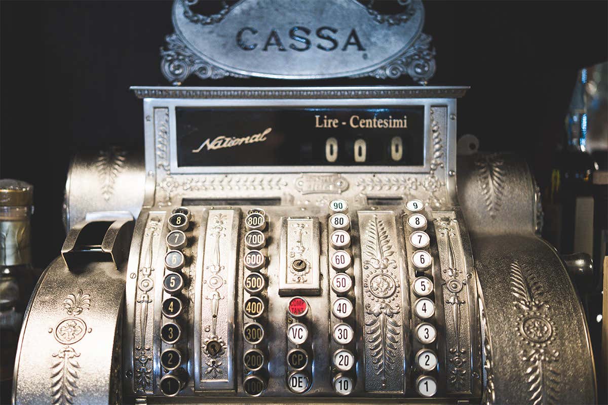 La prima cassa dell‘Osteria della Pista, una National tuttora funzionante