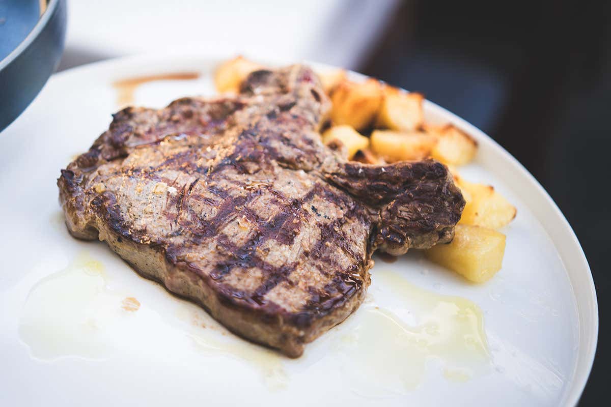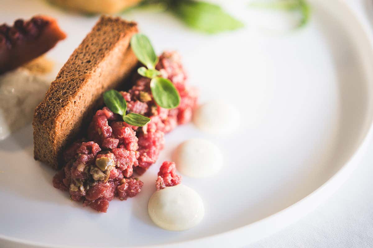 Battuta di manzo a coltello con pan brioche al cacao, Osteria della Pista
