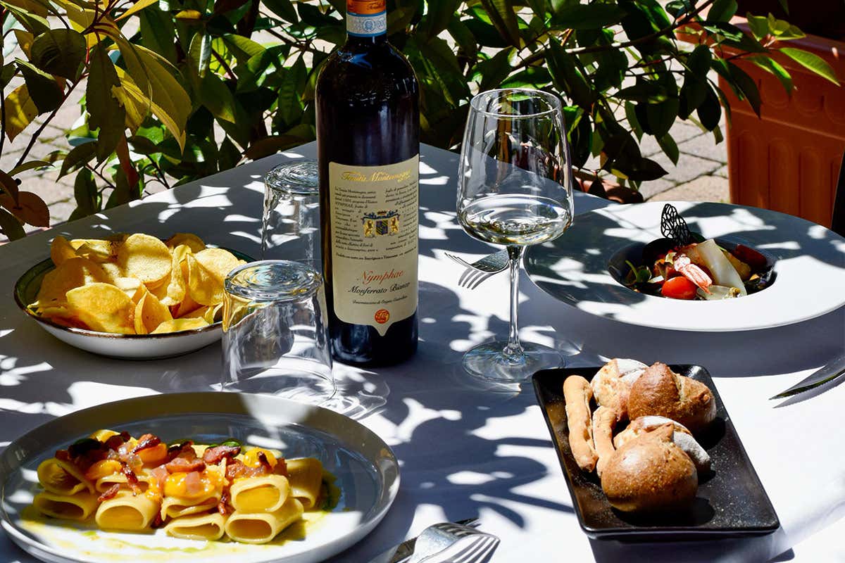 La carta dei vini conta circa 170 etichette italiane e 25-30 champagne (grandi maison e piccoli produttori a rotazione), con un'attenzione particolare al racconto e all'abbinamento. «Abbiamo inserito anche una drink list di cocktail e mocktail, dai classici analcolici come il Negroni reinterpretato, fino agli spritz dealcolati. È una tendenza in crescita - aggiunge Moalli. - E a fine pasto proponiamo whisky di pregio e amari artigianali o poco conosciuti provenienti da tutta Italia».