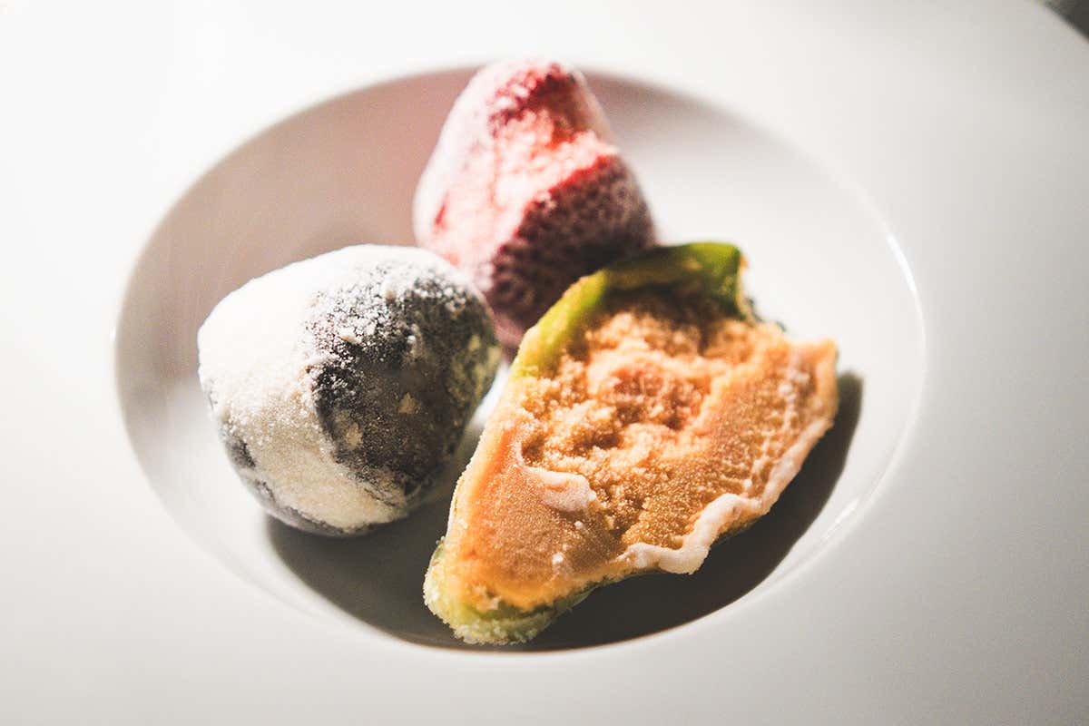 «Il ristorante conta circa 200 coperti - spiega Moalli - e abbiamo sette persone che lavorano in cucina. Siamo aperti sette giorni su sette e chiudiamo solo il giorno di Natale e Santo Stefano, per permettere a ciascuno di festeggiare con la propria famiglia. Il nostro menu è piuttosto ampio: ci sono i classici intramontabili, che non escono mai dalla carta, e poi piatti che cambiamo stagionalmente. Tra i classici, ad esempio, ci sono gli Scialatielli ai frutti di mare o la Cacio e pepe al lime con pepe di Sichuan, nata quasi per gioco e diventata poi irrinunciabile. Un altro piatto che racconta Tramonti, e che non possiamo assolutamente togliere perché è l'antipasto più venduto, è il Polpo scottato con stracciatella, pomodorino secco e pane biscotto al finocchietto (pane che arriva direttamente da Tramonti). Abbiamo anche le alici di Cetara, la colatura di Cetara, e i dolci: alcuni fatti da noi, altri invece arrivano dalla costiera, prodotti da Salvatore De Riso, nostro caro amico - la sua azienda è a 100 metri da casa nostra - e siamo stati tra i primi ristoranti del Nord a lavorare con lui. Offriamo anche i fruttini amalfitani, fatti a mano da una gelateria di Salerno».